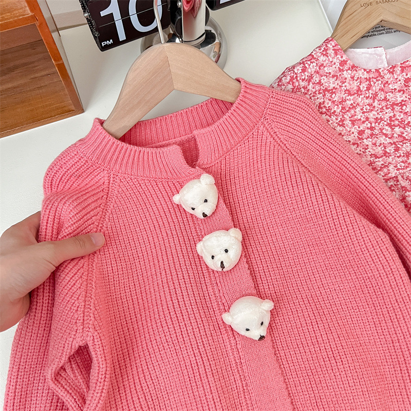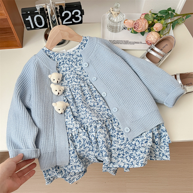 [핑크 집] 여자 가을 옷 원피스 2024 새로운 어린이 공주 원피스 꽃 스커트 서양식 투피스 세트