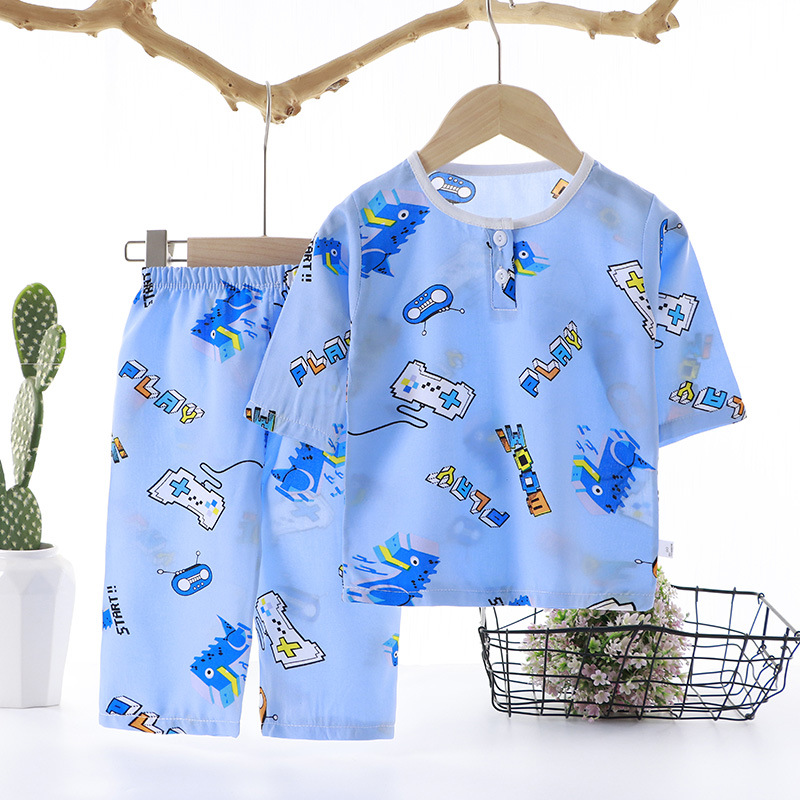 여름 면 실크 잠옷, 얇은 가정복, 소년 소녀 정장, 어린이 스타일, 귀여운 패턴으로 착용 가능스토어 가기