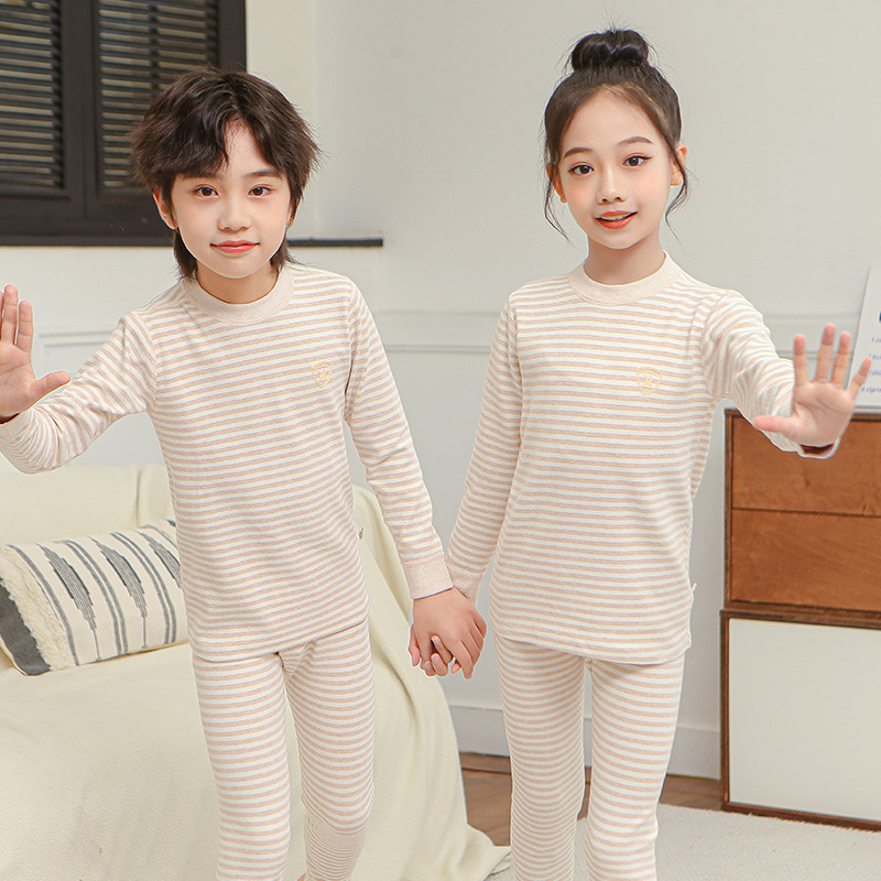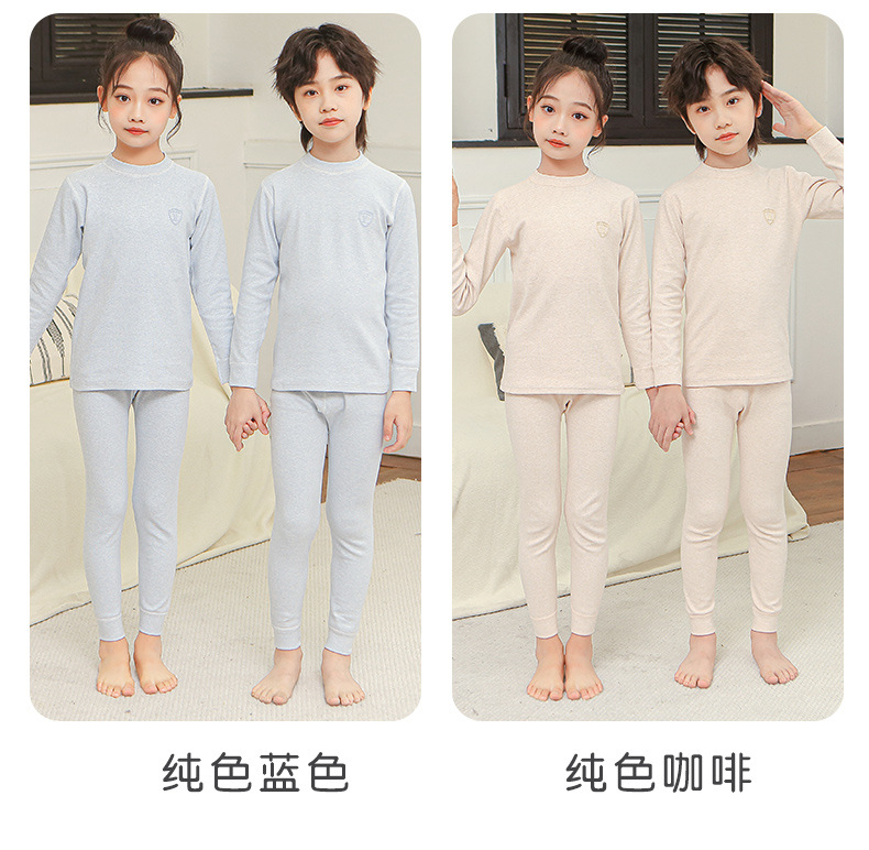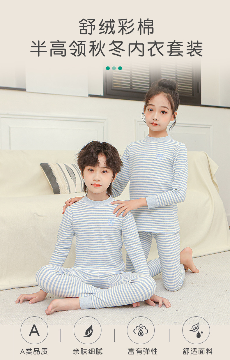 어린이 속옷 세트, 부드러운 순면, 청소년용 가을옷과 가을바지, 남아 여아용 중간 칼라 면 스웨터, 잠옷스토어 가기