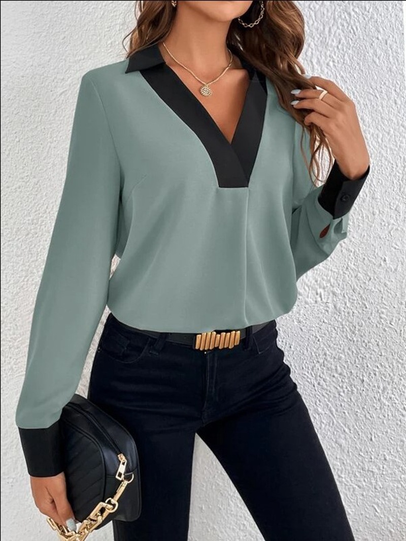 재고 새로운 가을 새로운 아마존, 유럽과 미국의 국경 간 여성 V-넥 명암 캐주얼 셔츠 소원스토어 가기