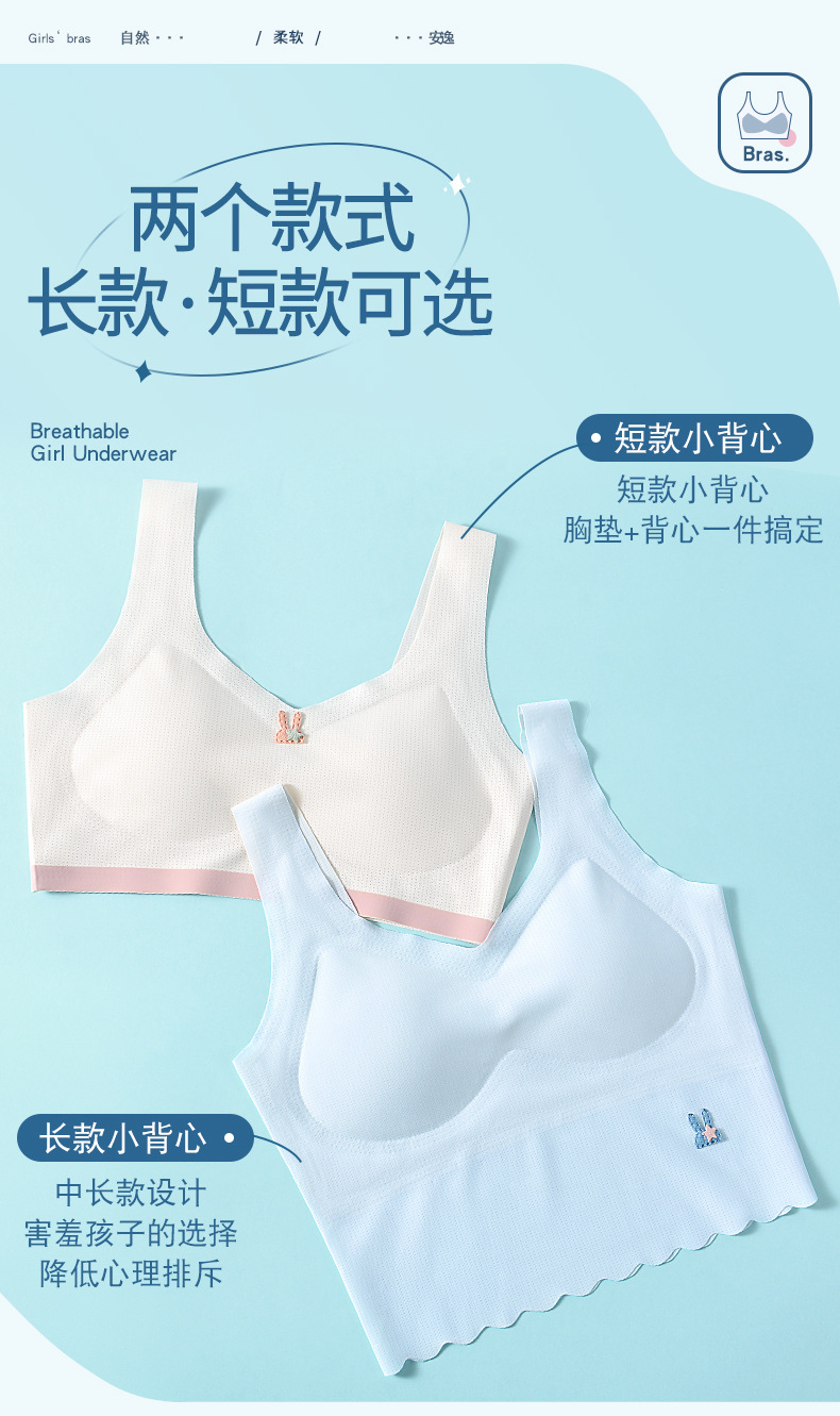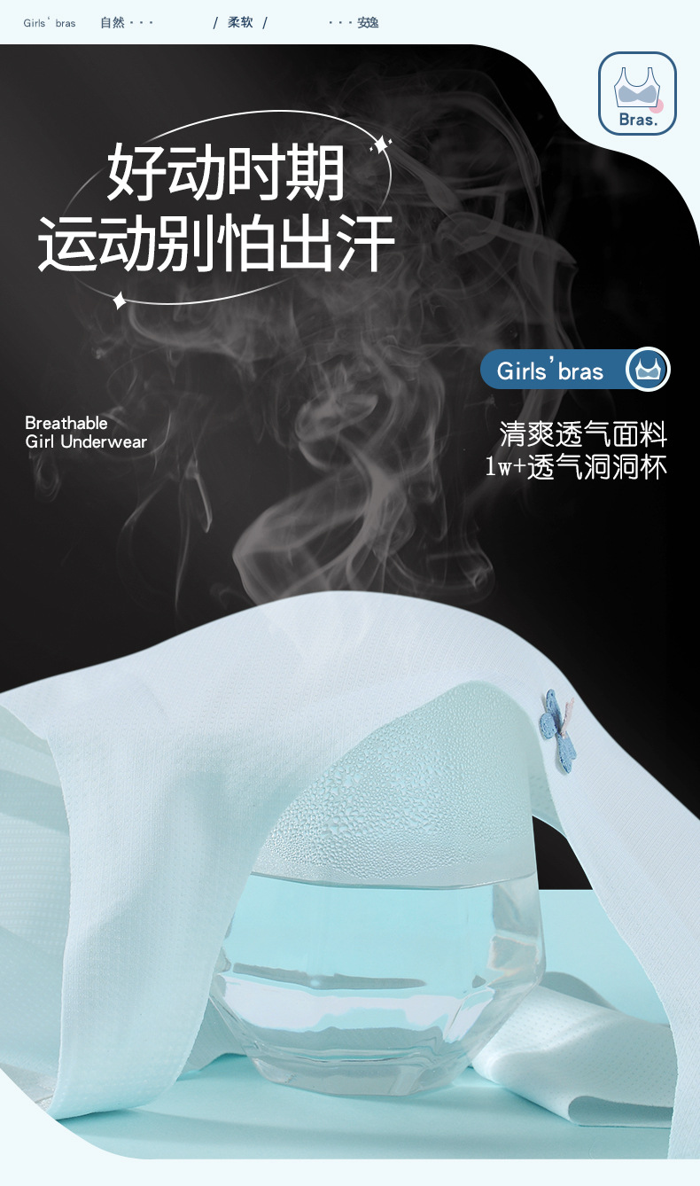 청소년 여아 속옷 5A 정균 추적 와이드 숄더 스트랩 여아 조끼 중학생 무테 스포츠 브라