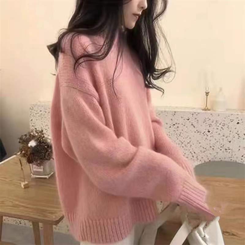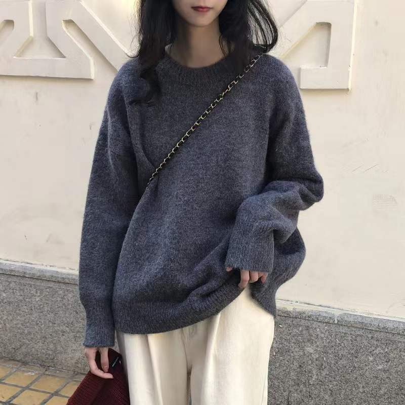 빈티지 솔리드 컬러 라운드 넥 풀오버 스웨터 여성의 가을과 겨울 겉옷 2023 새로운 한국 스타일 느슨한 홍콩 스타일 스웨터 탑스토어 가기