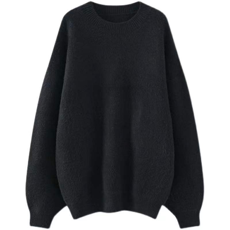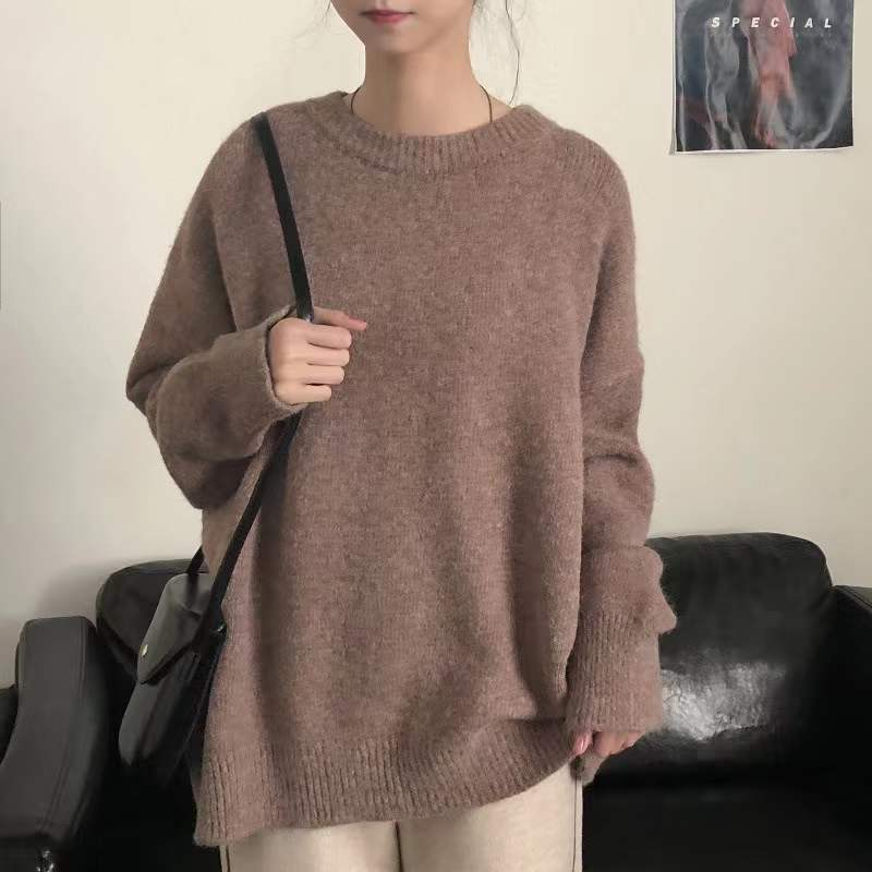 빈티지 솔리드 컬러 라운드 넥 풀오버 스웨터 여성의 가을과 겨울 겉옷 2023 새로운 한국 스타일 느슨한 홍콩 스타일 스웨터 탑