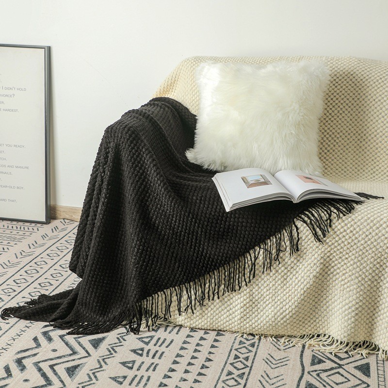 모조 캐시미어 플레인 컬러 사계절 유니버설 소파 담요 북유럽 스타일 술 홈스테이 침대 끝 담요 장식 에어컨 방 담요
