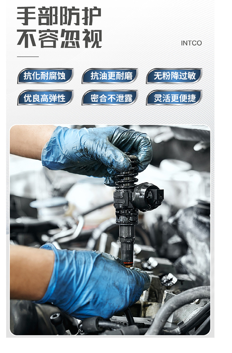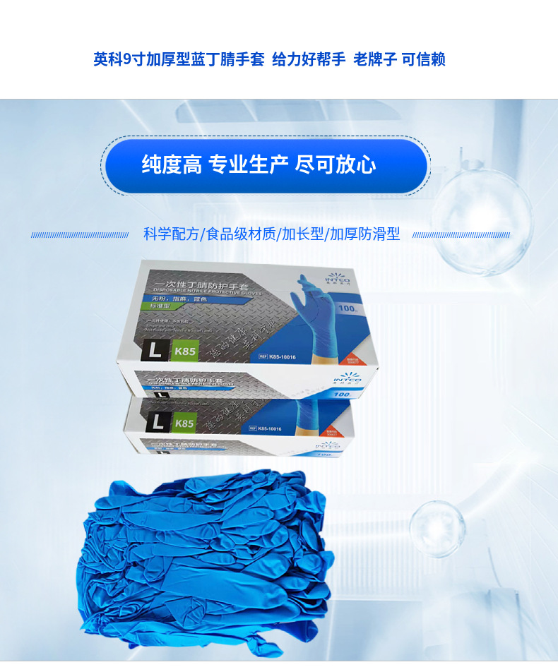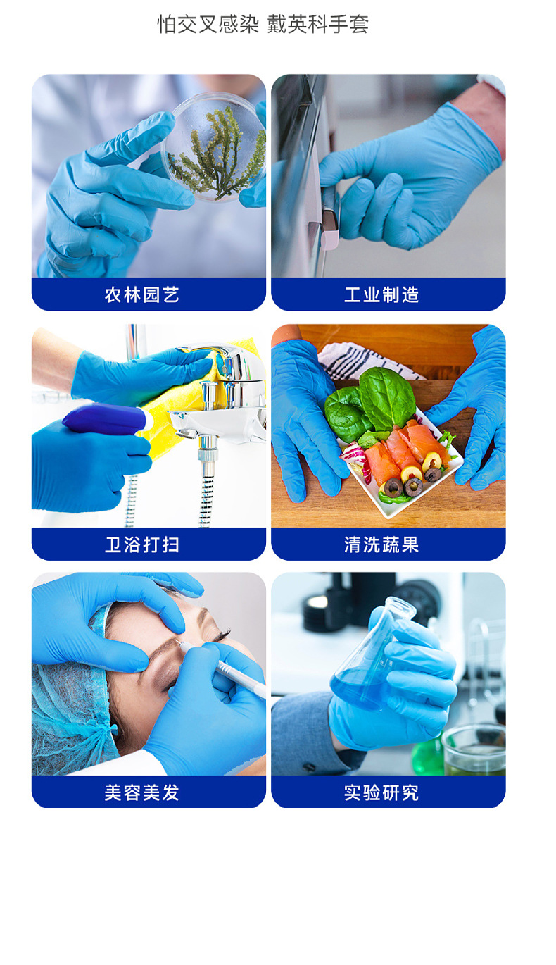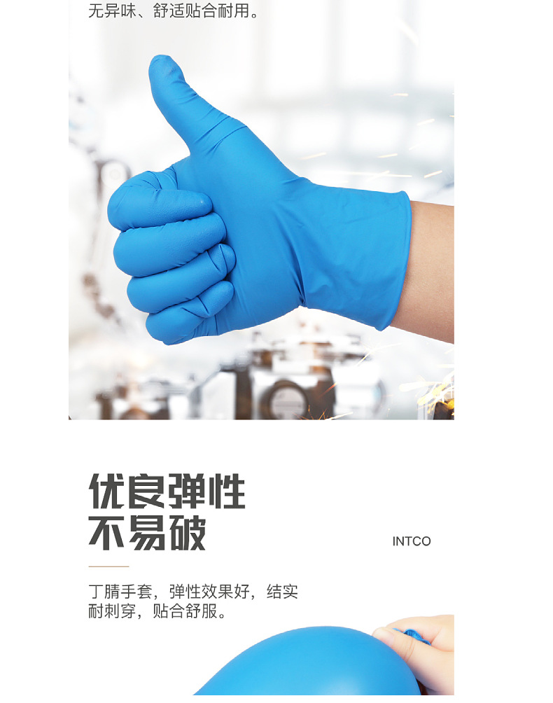 Yingke 일회용 블루 니트릴 장갑 기름 방지 및 방오 검사 식품 등급 박스형 취사 주방 Ding Qing 장갑스토어 가기