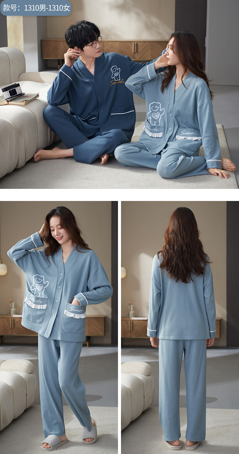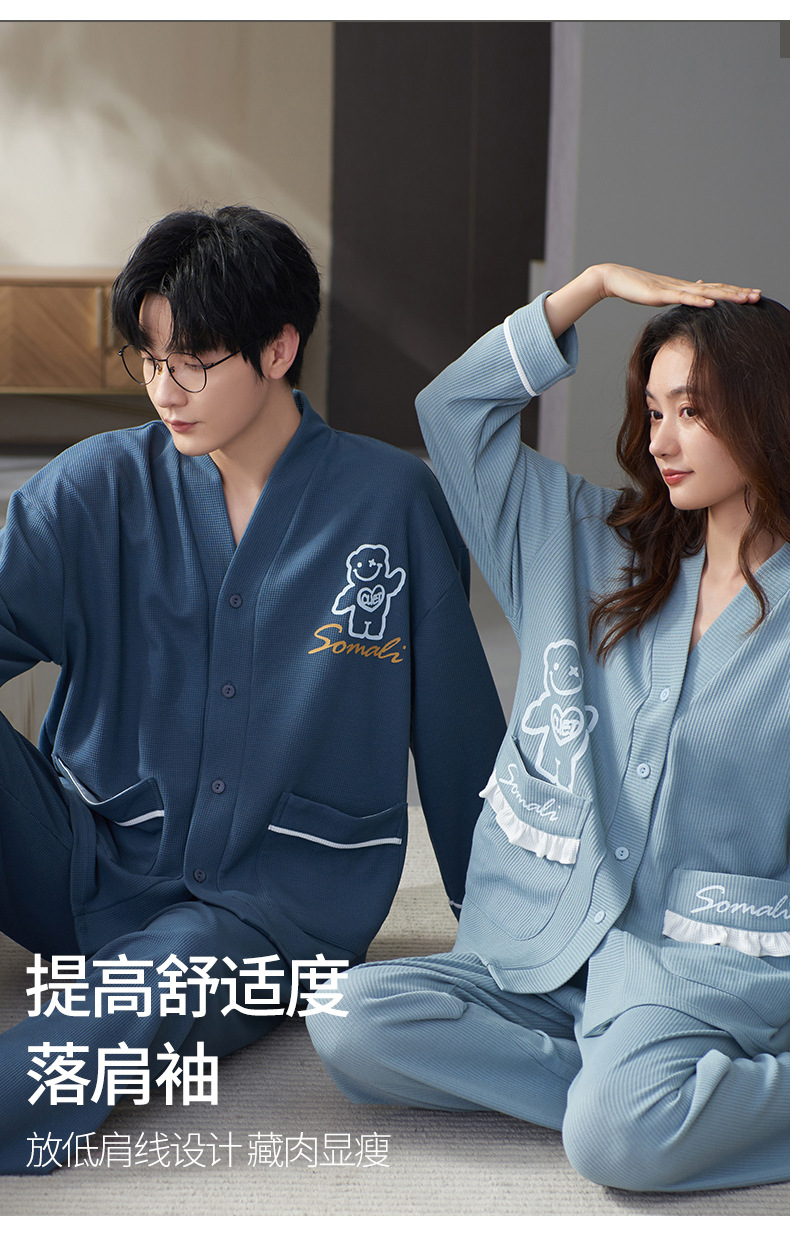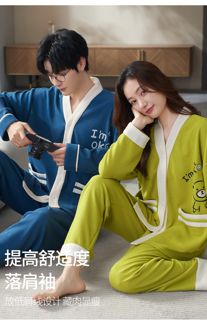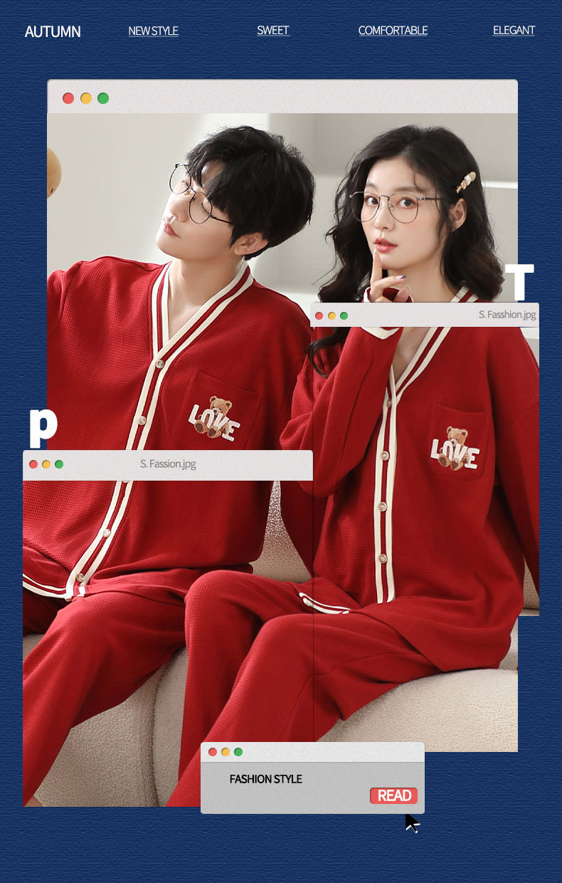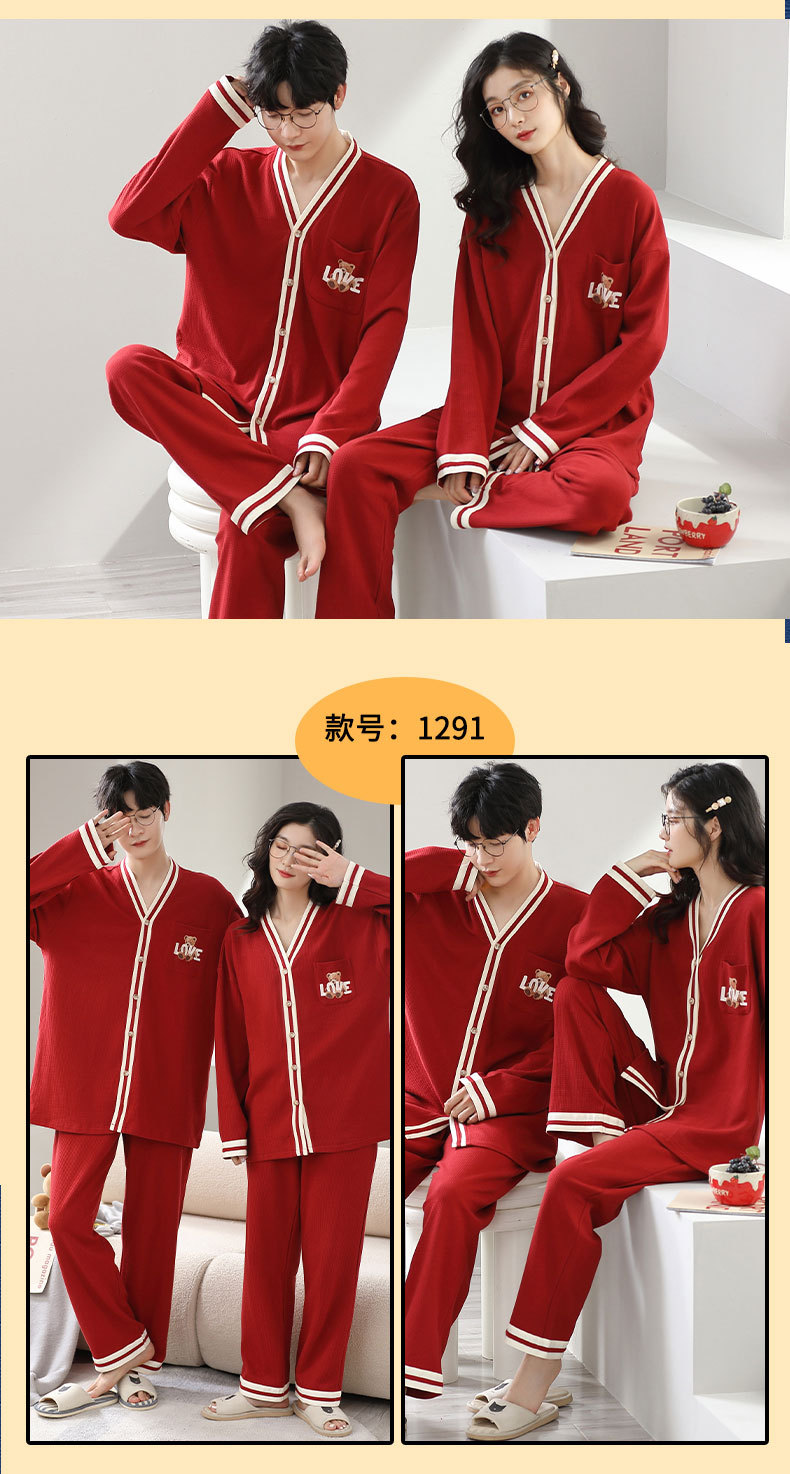 가슴 패드가 있는 커플 잠옷 여성용 가을 면 긴팔 결혼 축하용 밝은 빨간색 홈웨어 남성용 봄 가을 세트스토어 가기