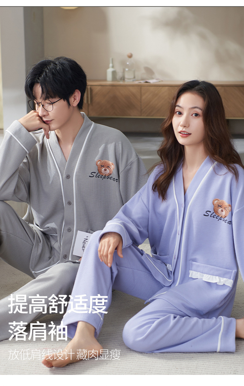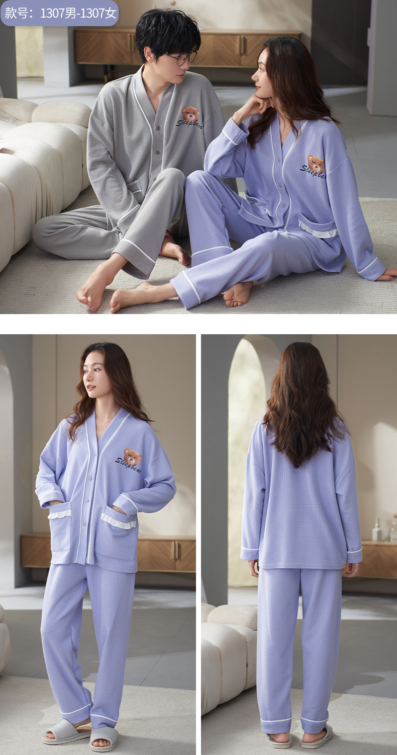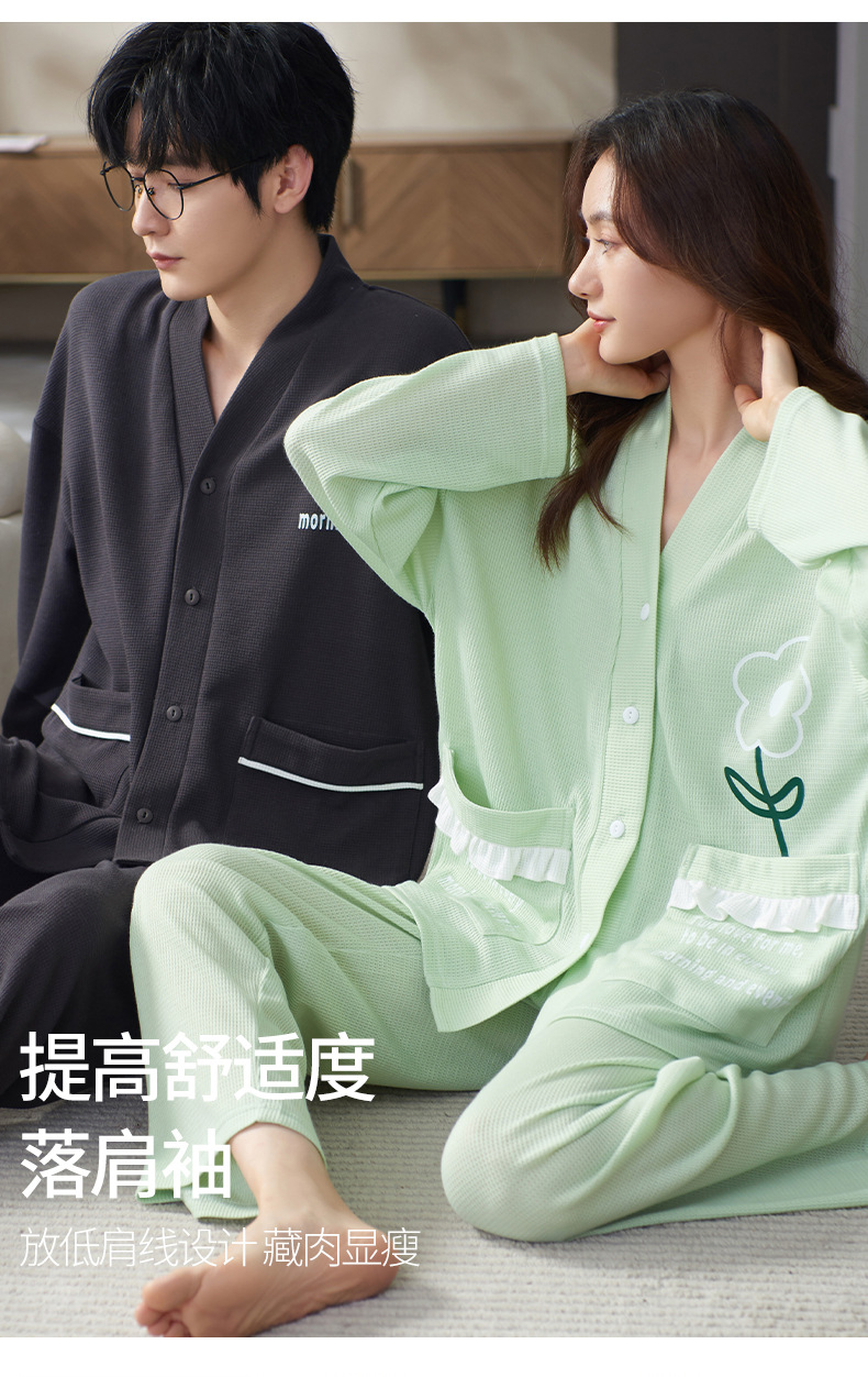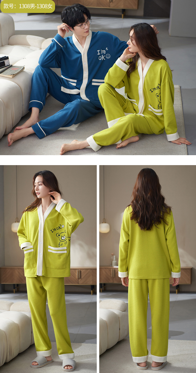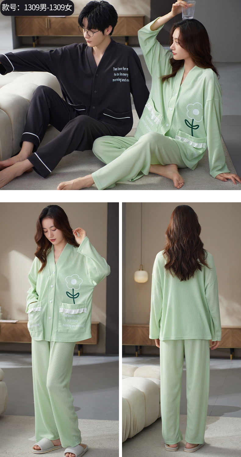 가슴 패드가 있는 커플 잠옷 여성용 가을 면 긴팔 결혼 축하용 밝은 빨간색 홈웨어 남성용 봄 가을 세트스토어 가기
