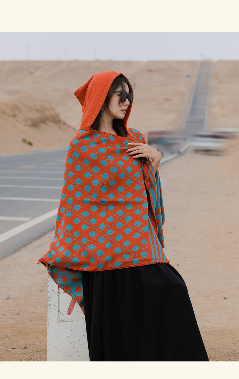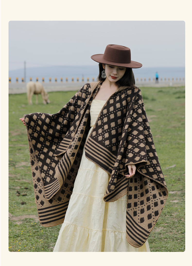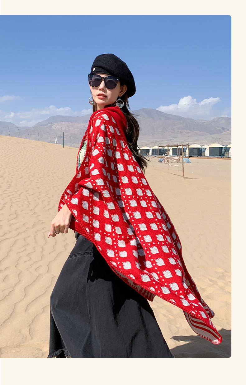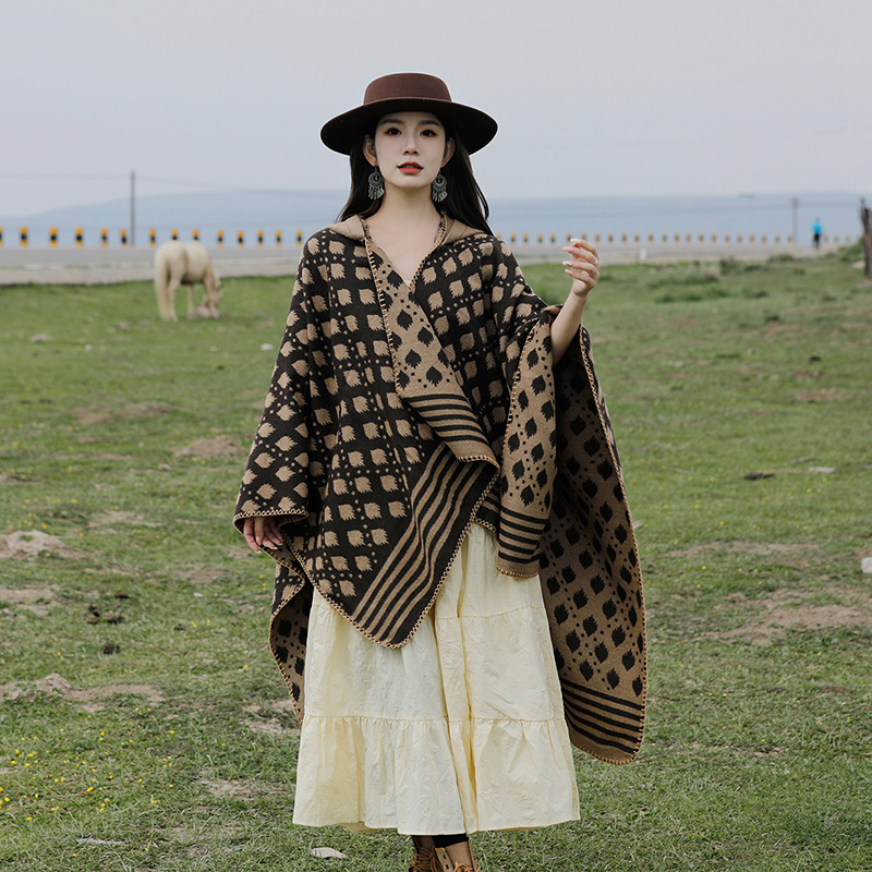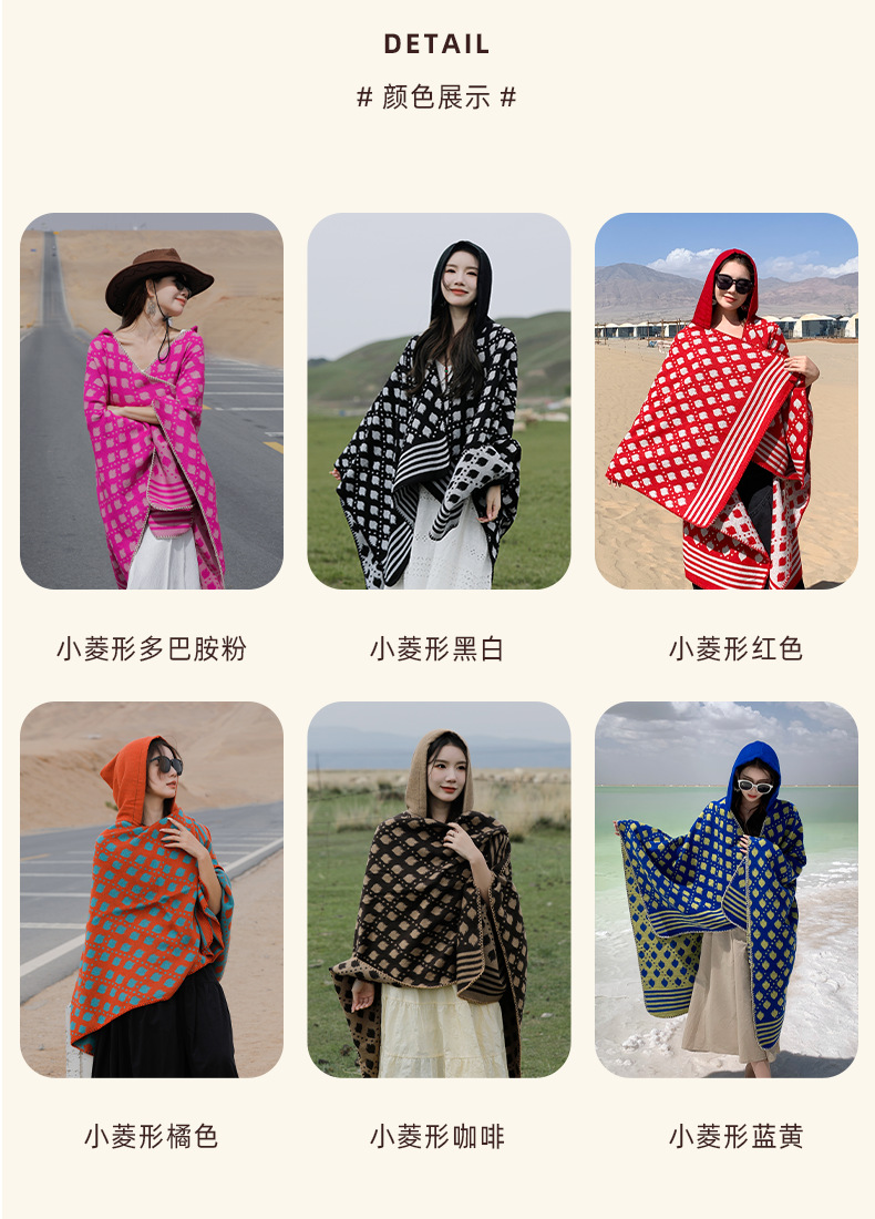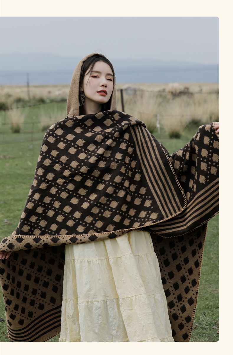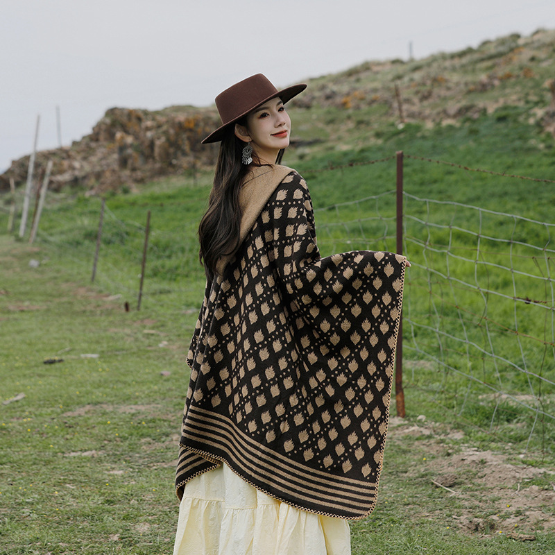 다이아몬드 격자 무늬 망토 목도리 여행 따뜻한 착용 민족 스타일 스카프 모든 경기 사막 신장 티베트 망토 여성