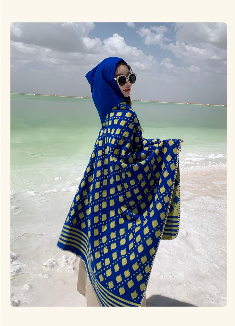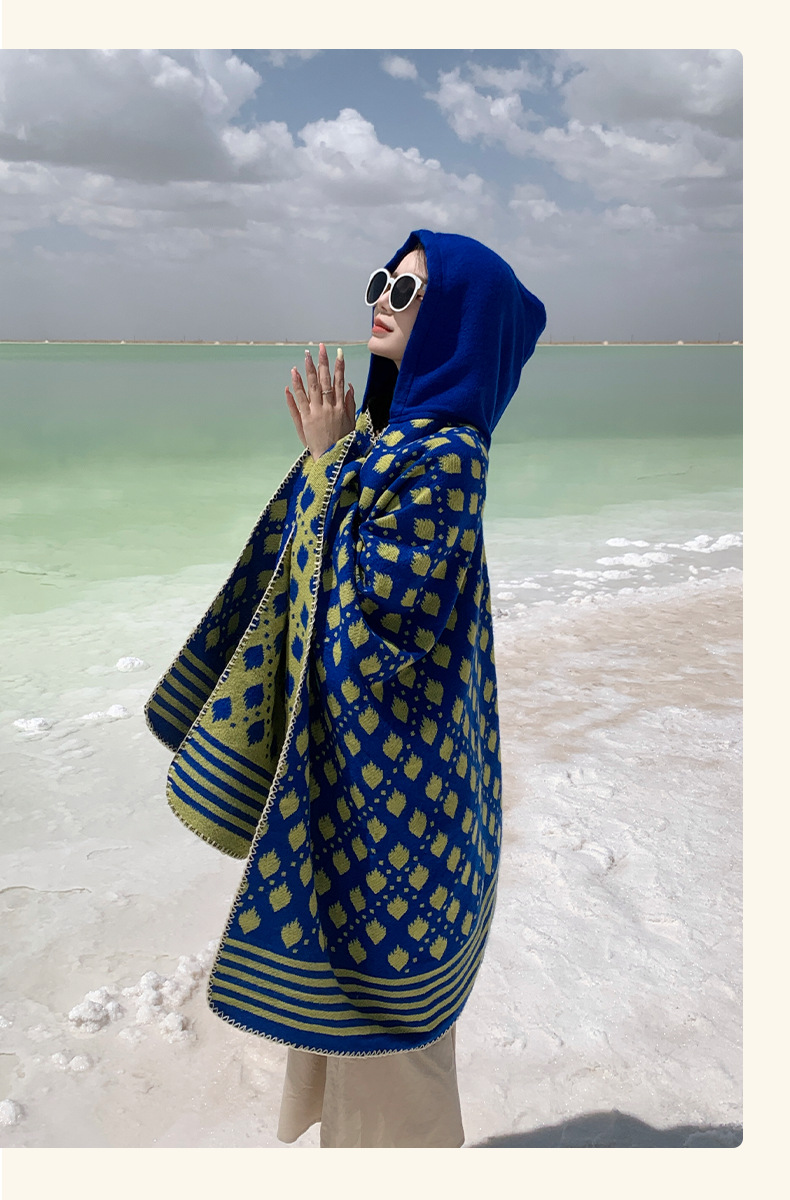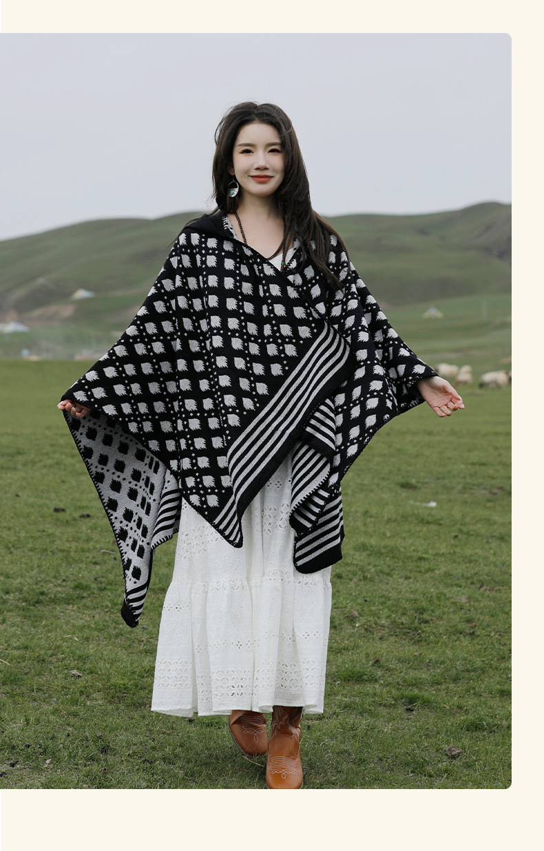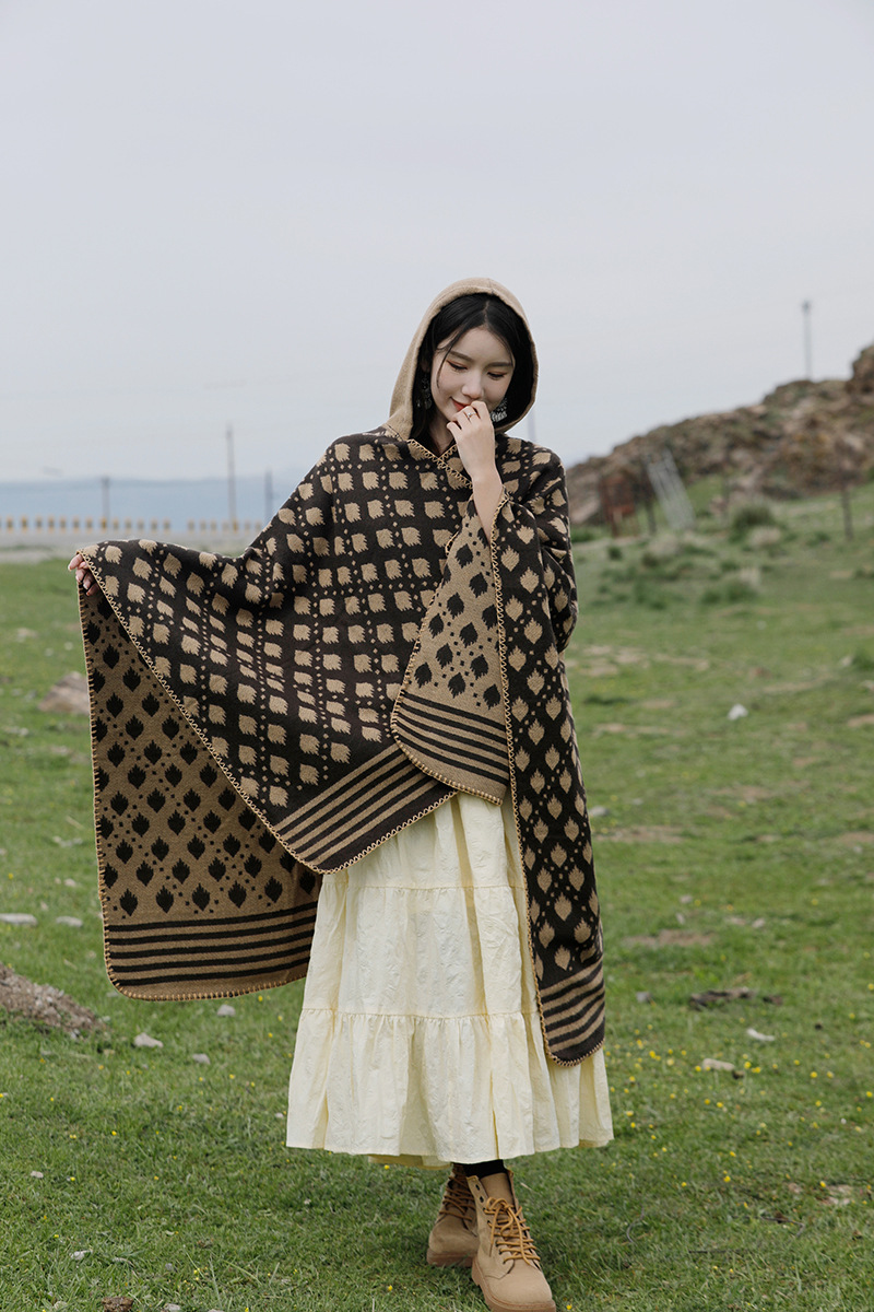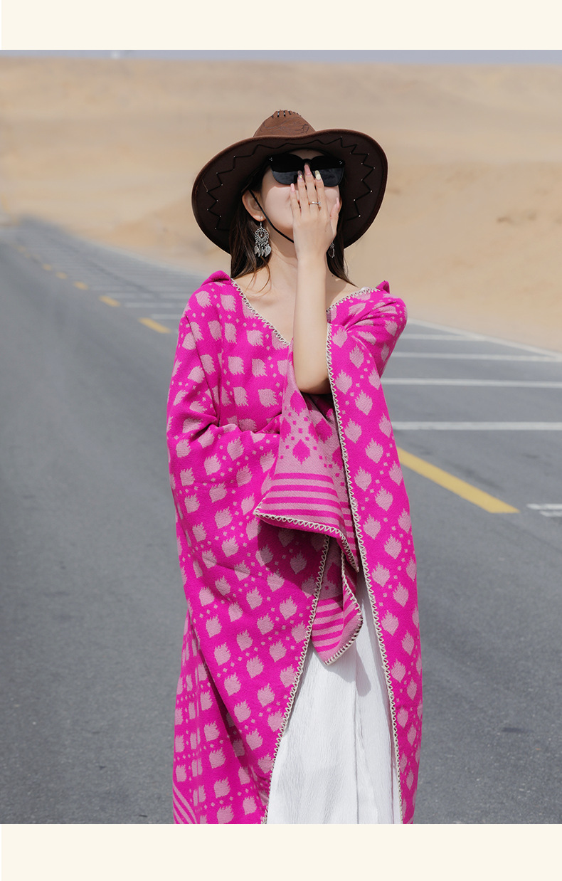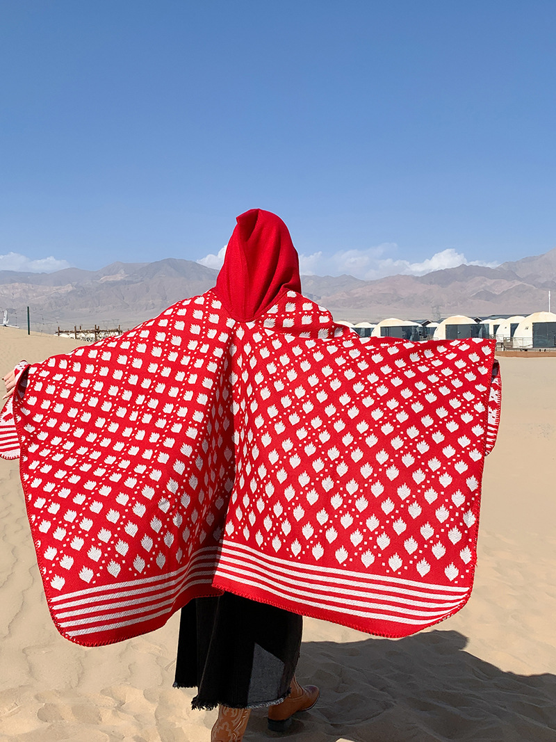 다이아몬드 격자 무늬 망토 목도리 여행 따뜻한 착용 민족 스타일 스카프 모든 경기 사막 신장 티베트 망토 여성