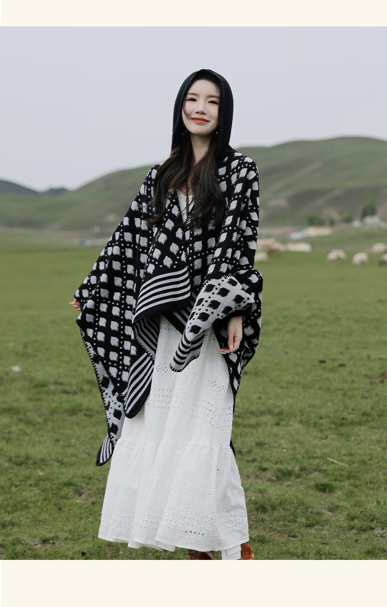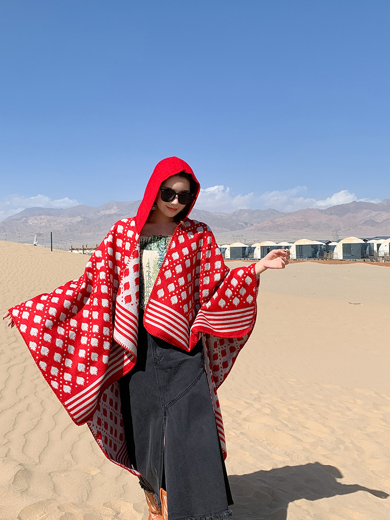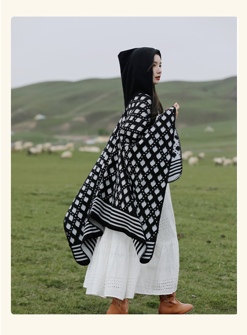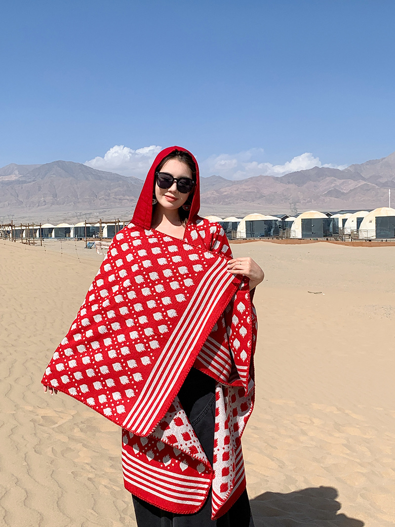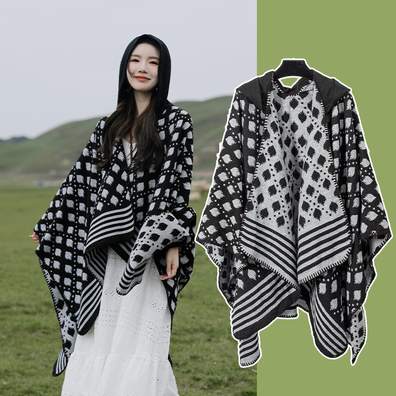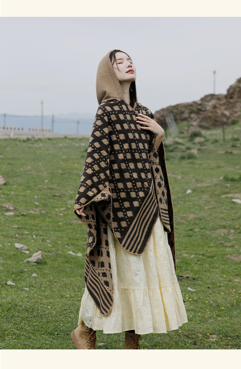 다이아몬드 격자 무늬 망토 목도리 여행 따뜻한 착용 민족 스타일 스카프 모든 경기 사막 신장 티베트 망토 여성