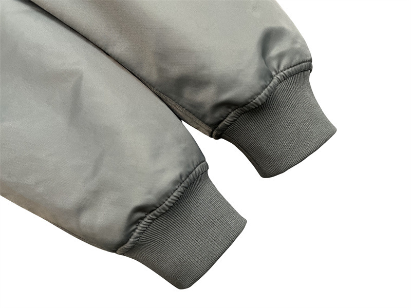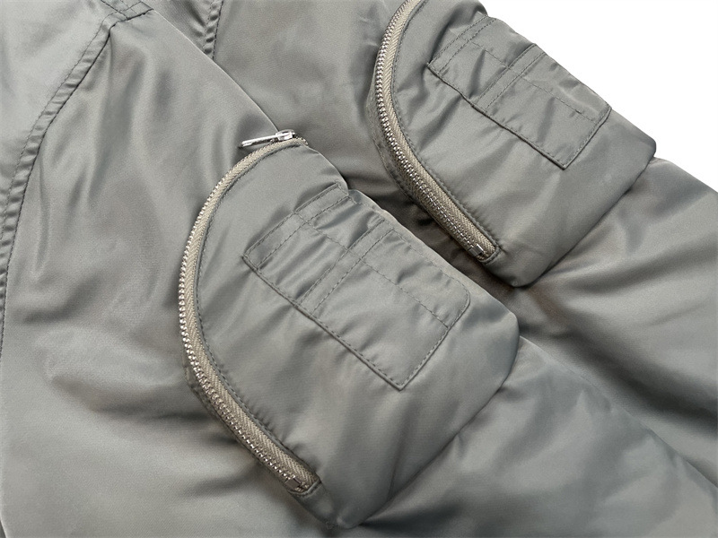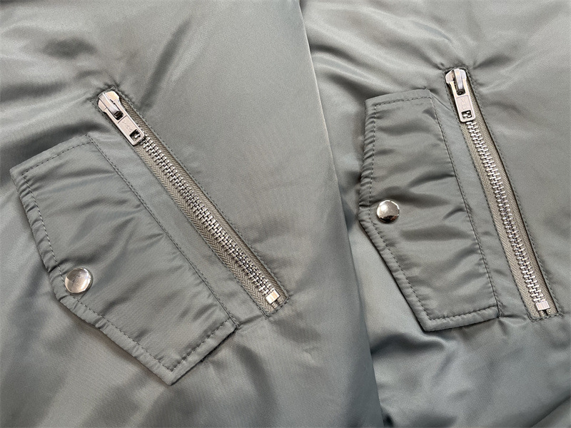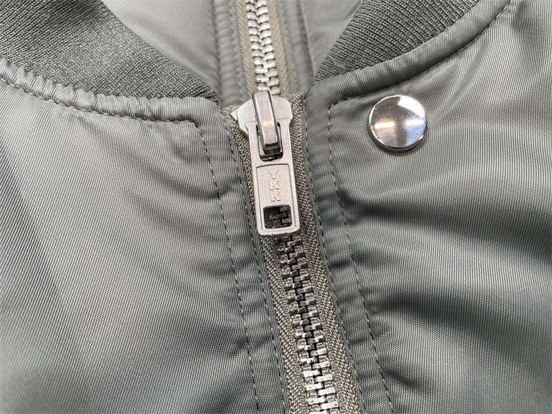 面料采用100%聚酯纤维涂层防水机能面料 颜色为灰绿色 太阳光底下会有金属色泽 光线底下看会显灰一些 暗处显绿 颜色比较特殊 前后染色也调整很久 衣服金属拉链为ykk白铜电镀拉链头配合Y牙拉链齿 一条衣服拉链就需要很高成本 袖子处有褶皱设计