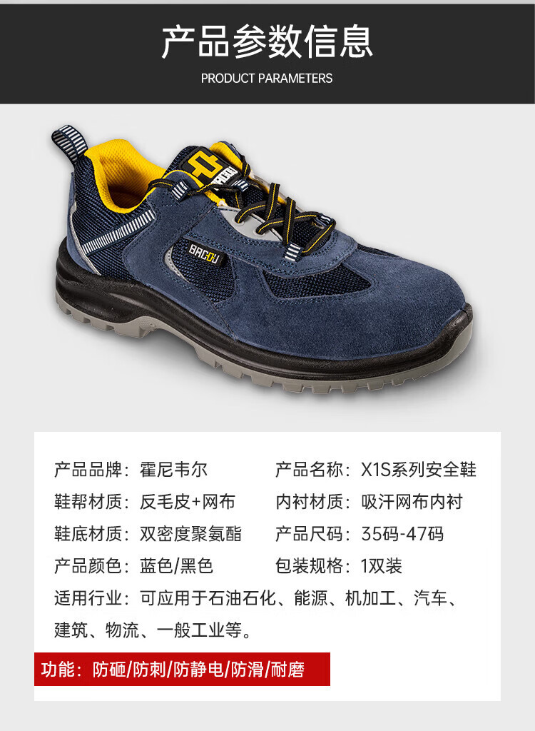 Honeywell X1S 충격 방지 및 펑크 방지 노동 보호 신발, 내마모성 및 내유성, 여름 소가죽 통기성 및 탈취제 안전 신발