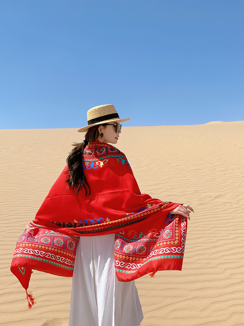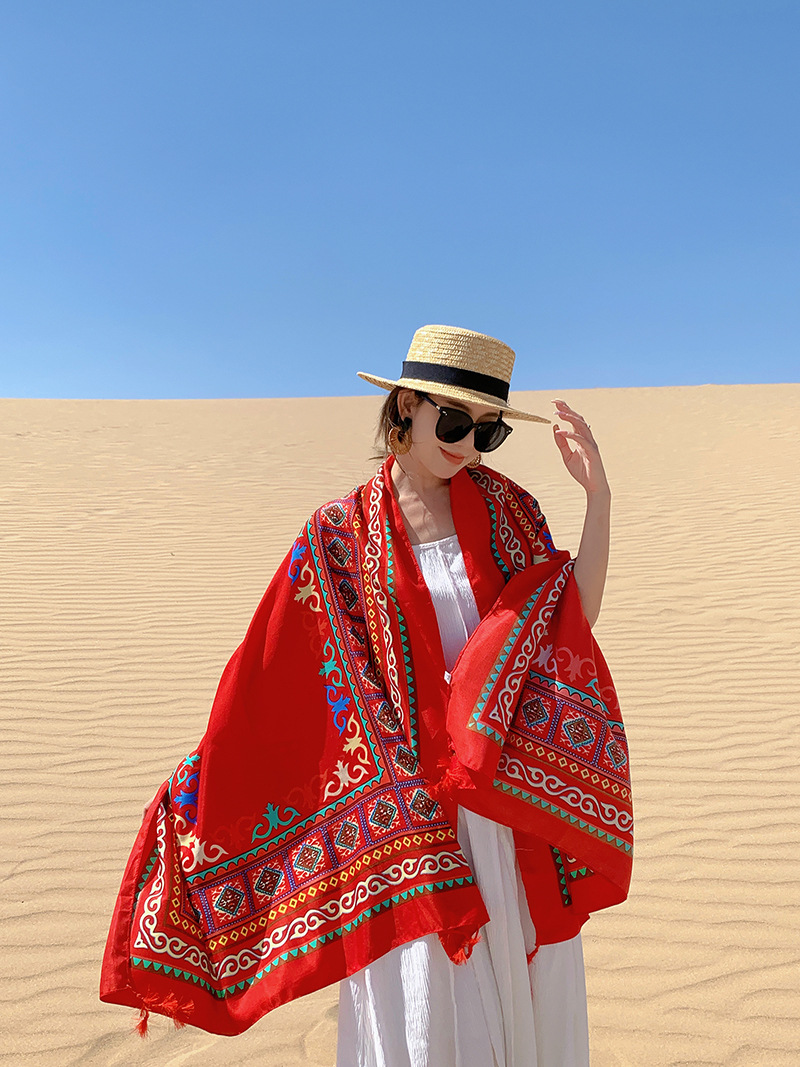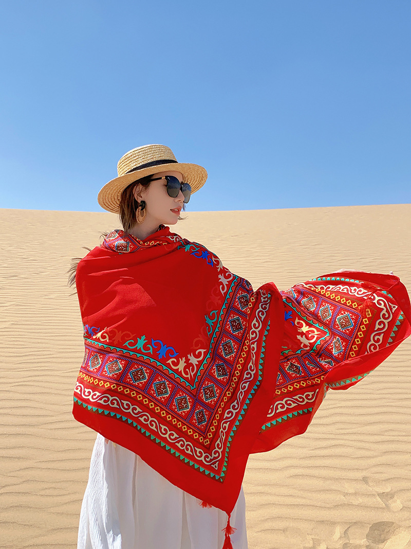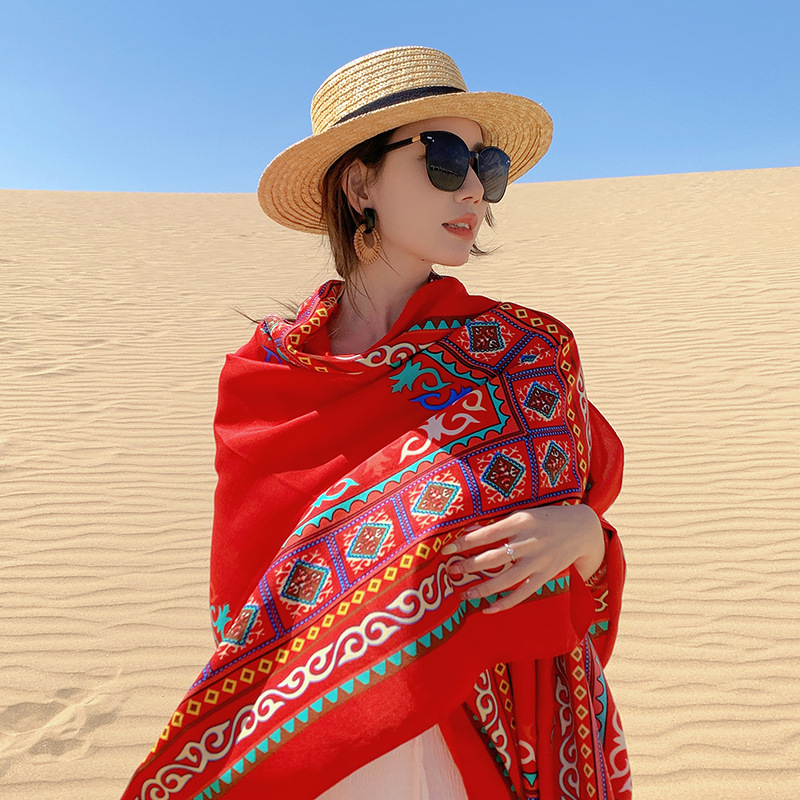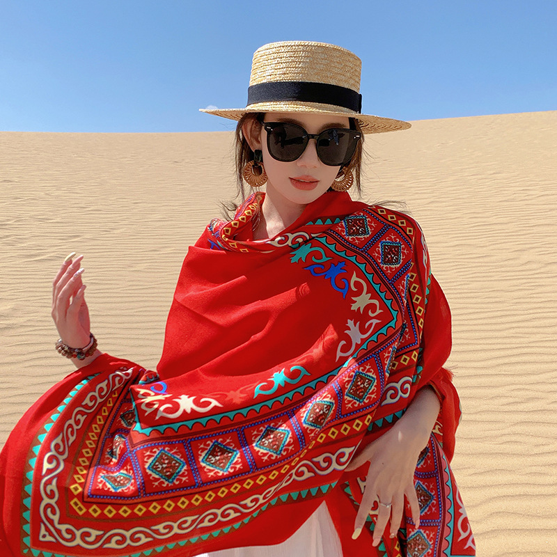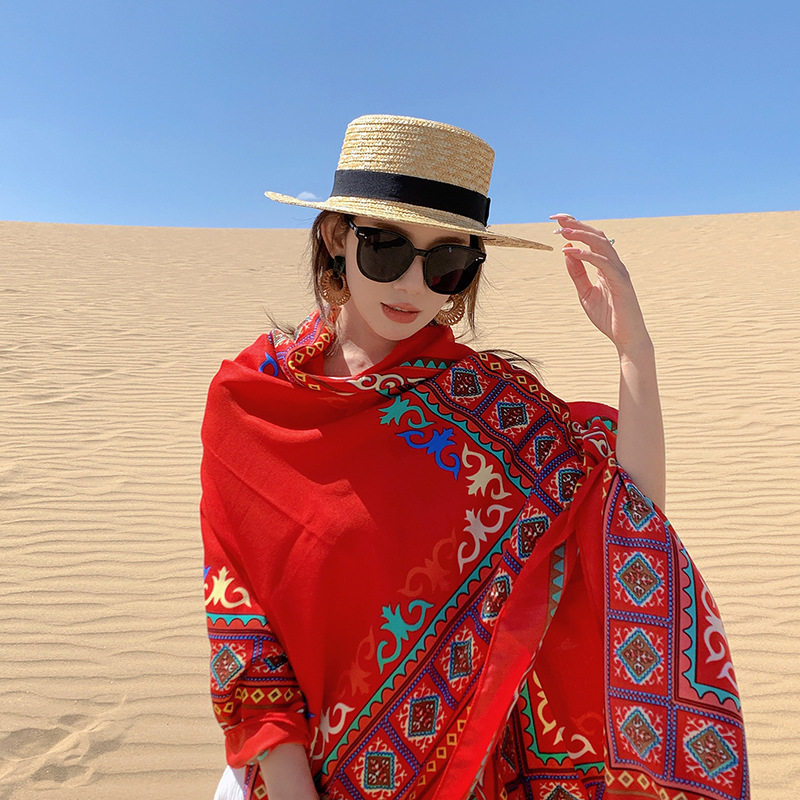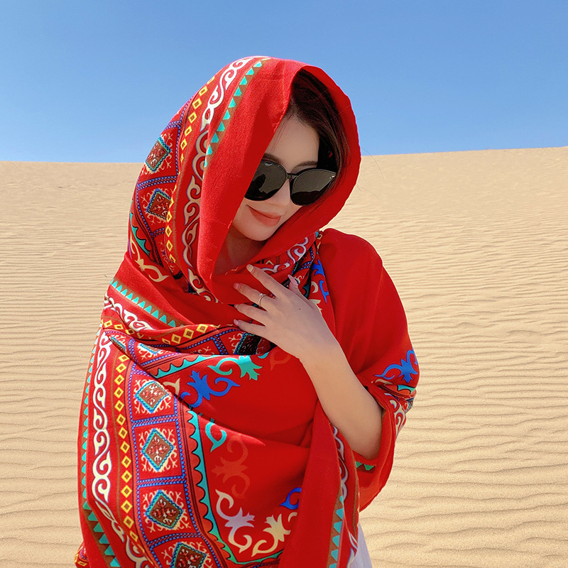 Dunhuang 사막 따뜻한 면과 린넨 스카프 여성용 여름 레드 에스닉 스타일 스카프 숄 스카프 여행 겉옷 케이프