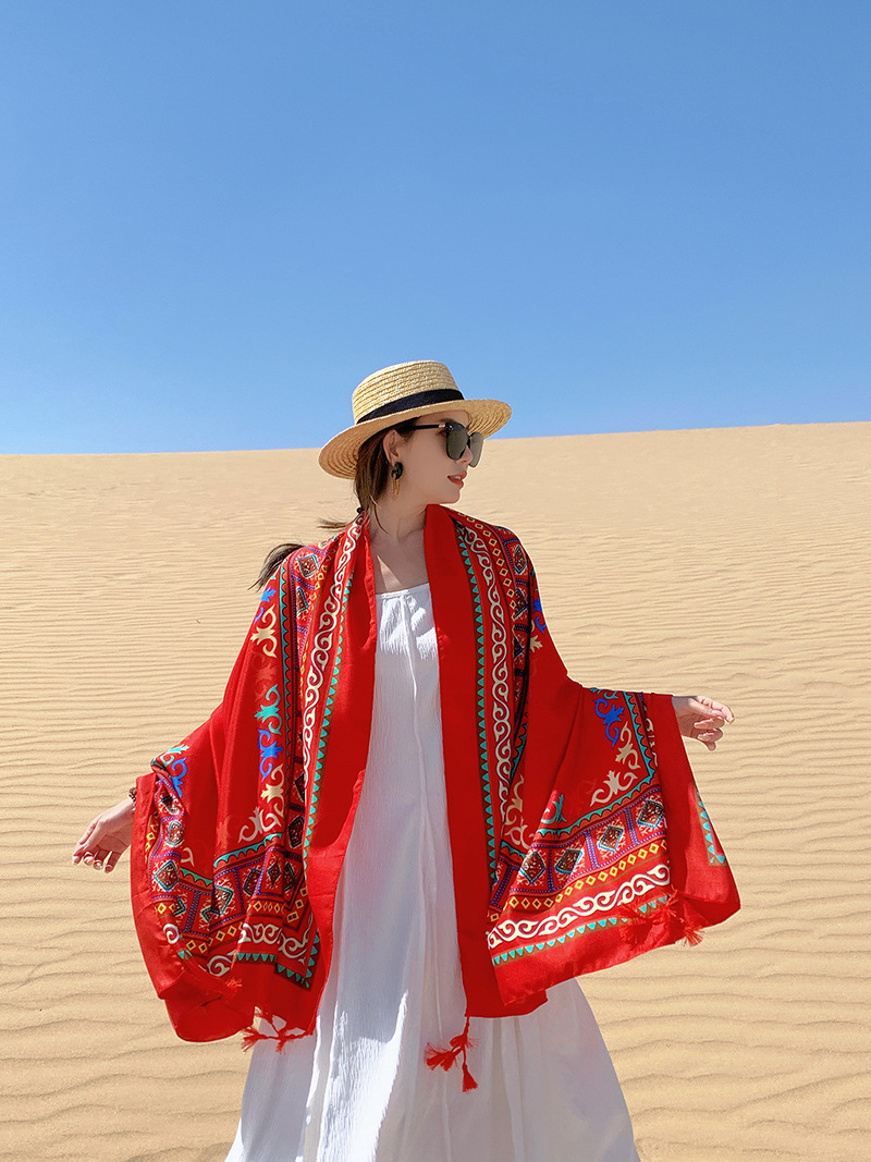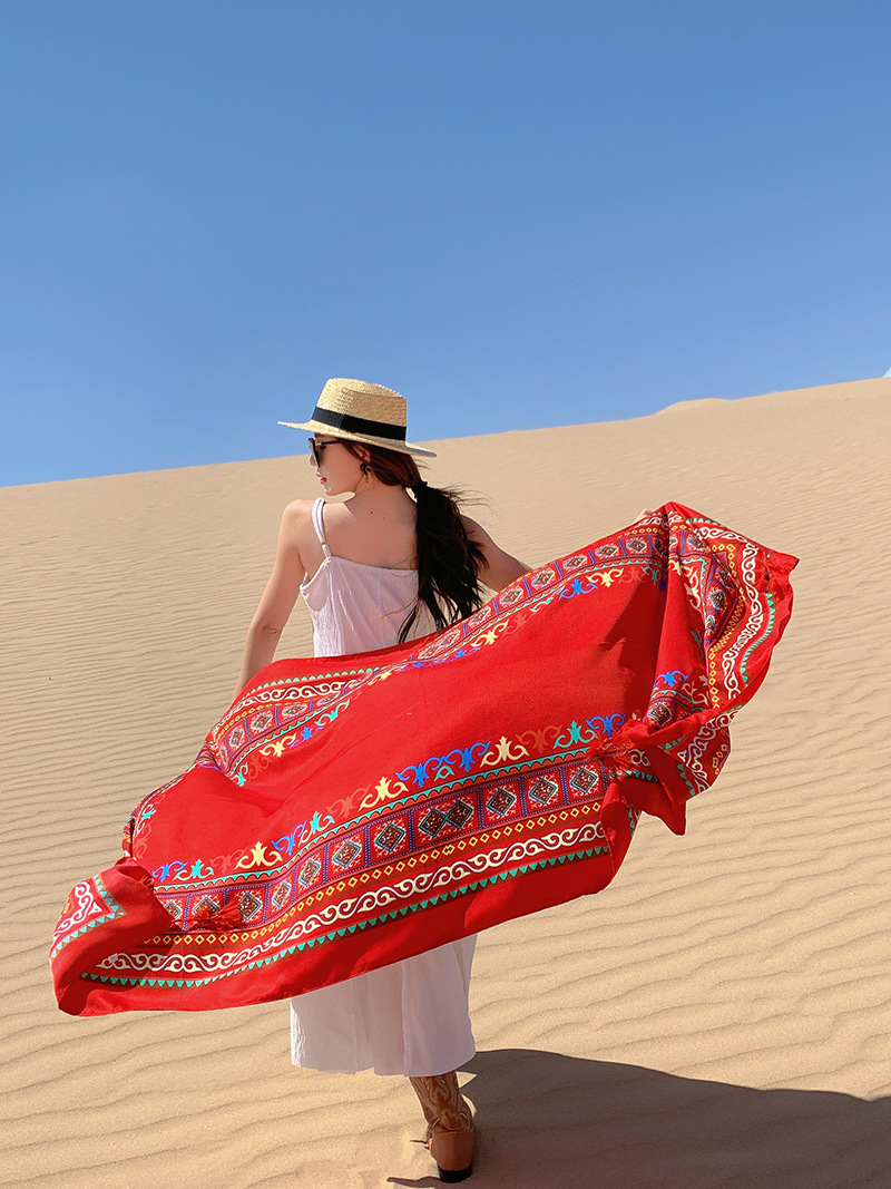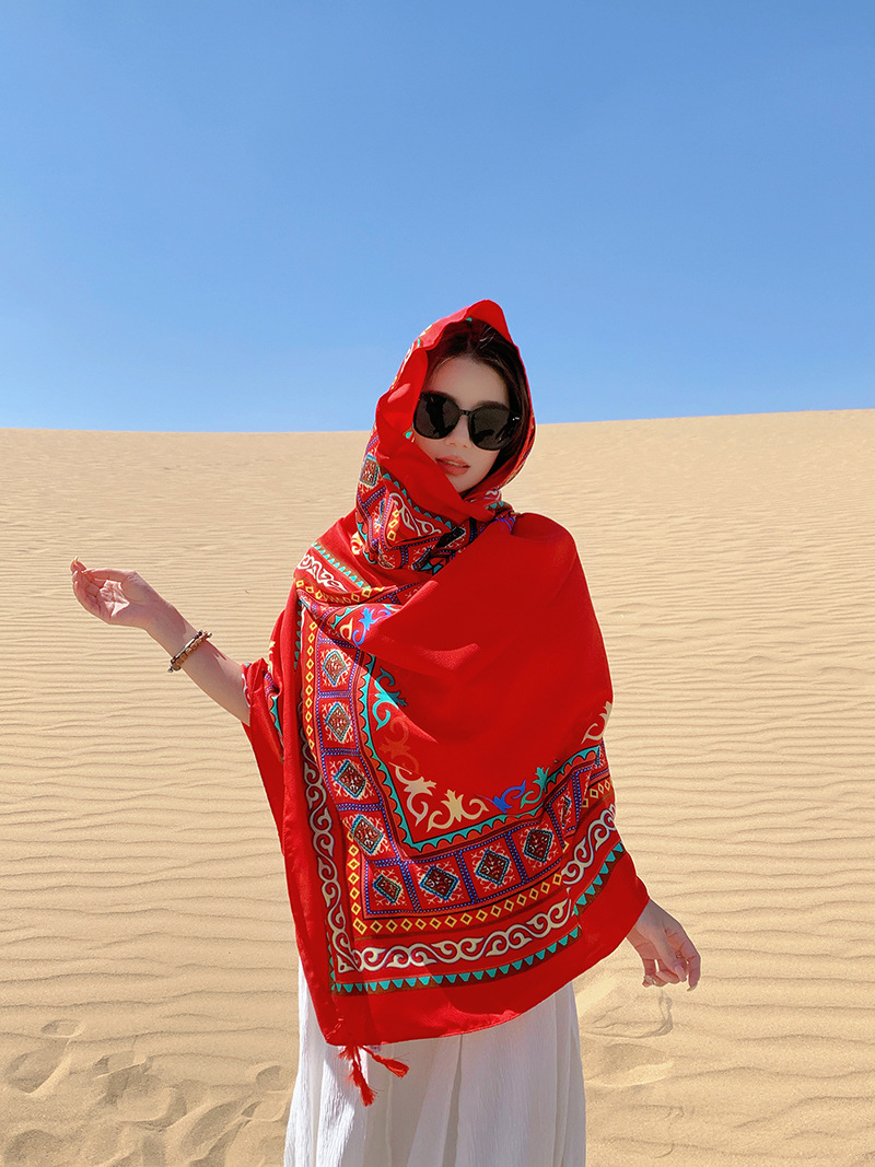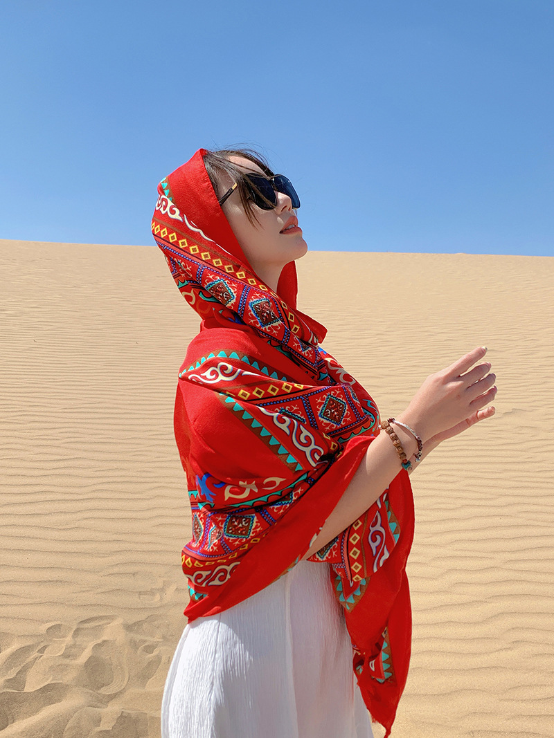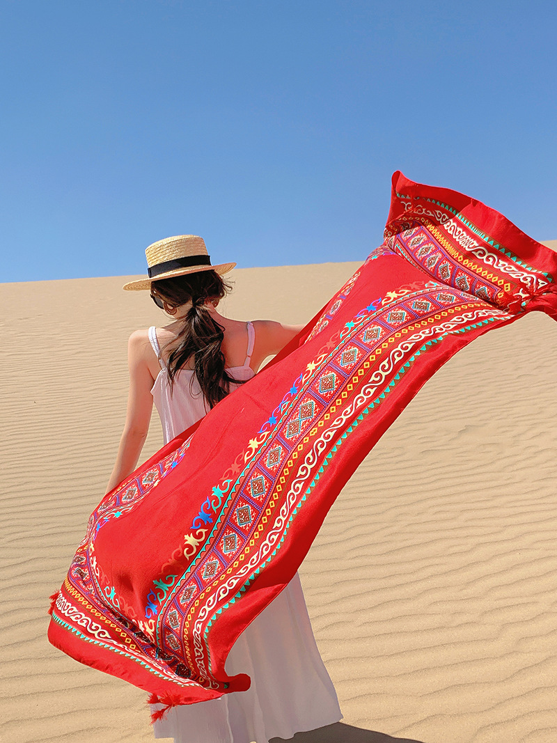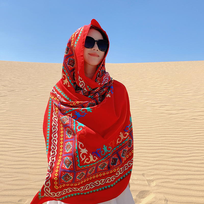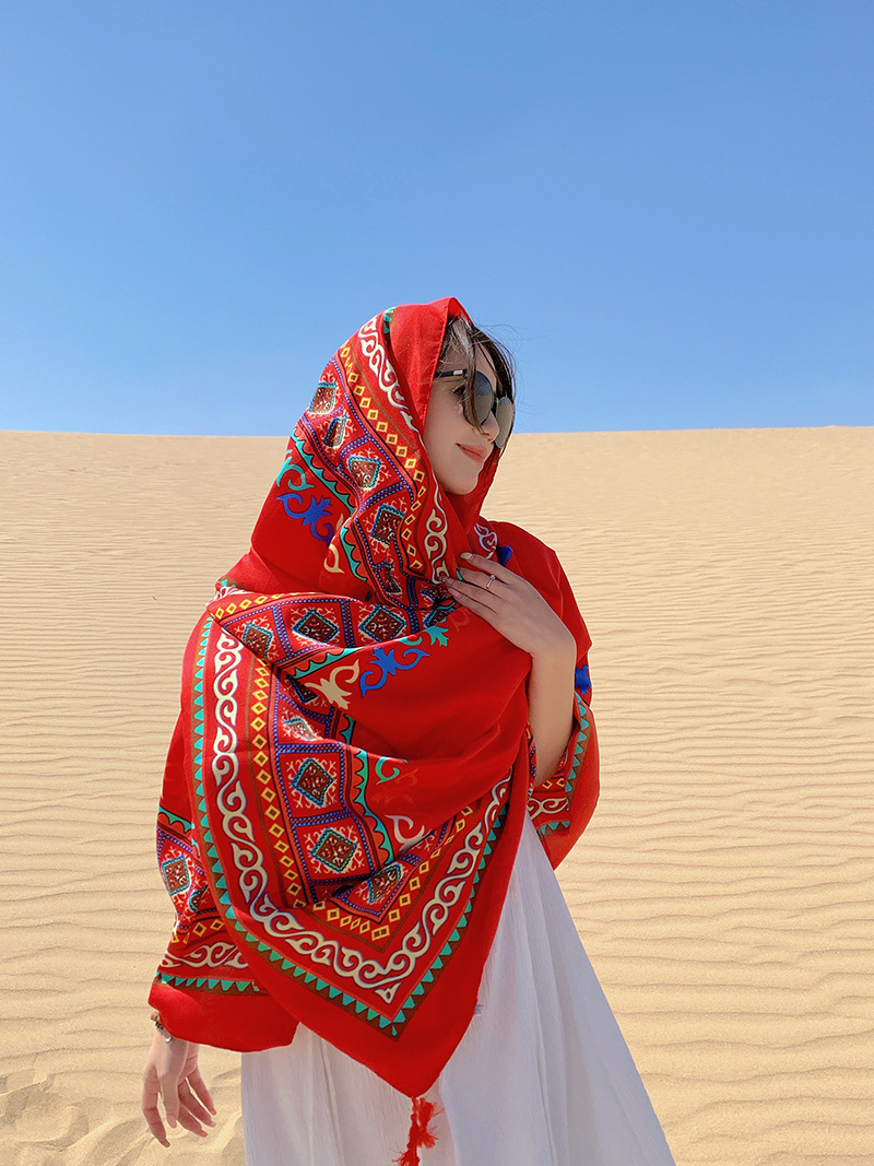 Dunhuang 사막 따뜻한 면과 린넨 스카프 여성용 여름 레드 에스닉 스타일 스카프 숄 스카프 여행 겉옷 케이프
