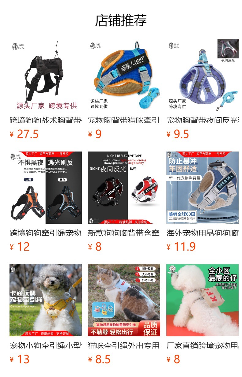 신형 크로스보더 아마존 애완동물 하네스 방폭 나일론 리드줄 레드 야간 반사 강아지 용품스토어 가기