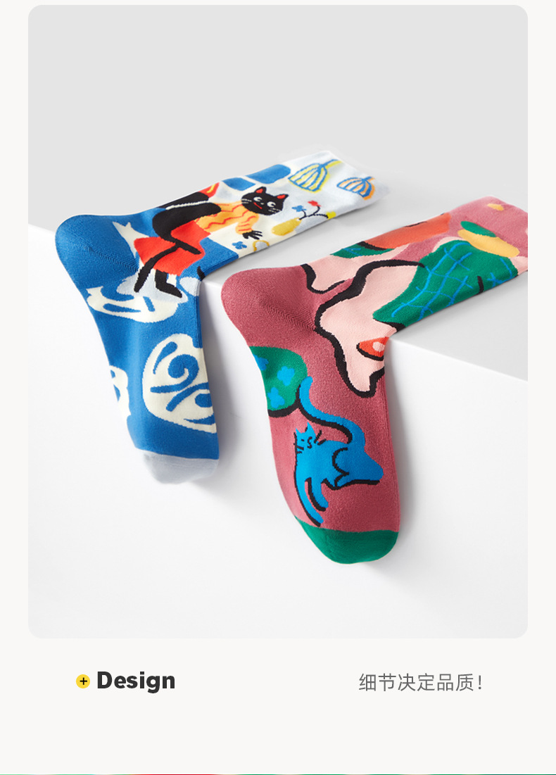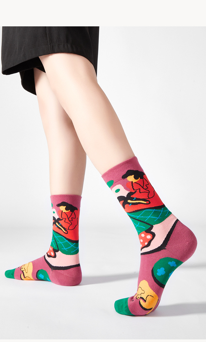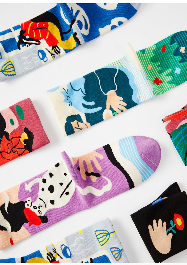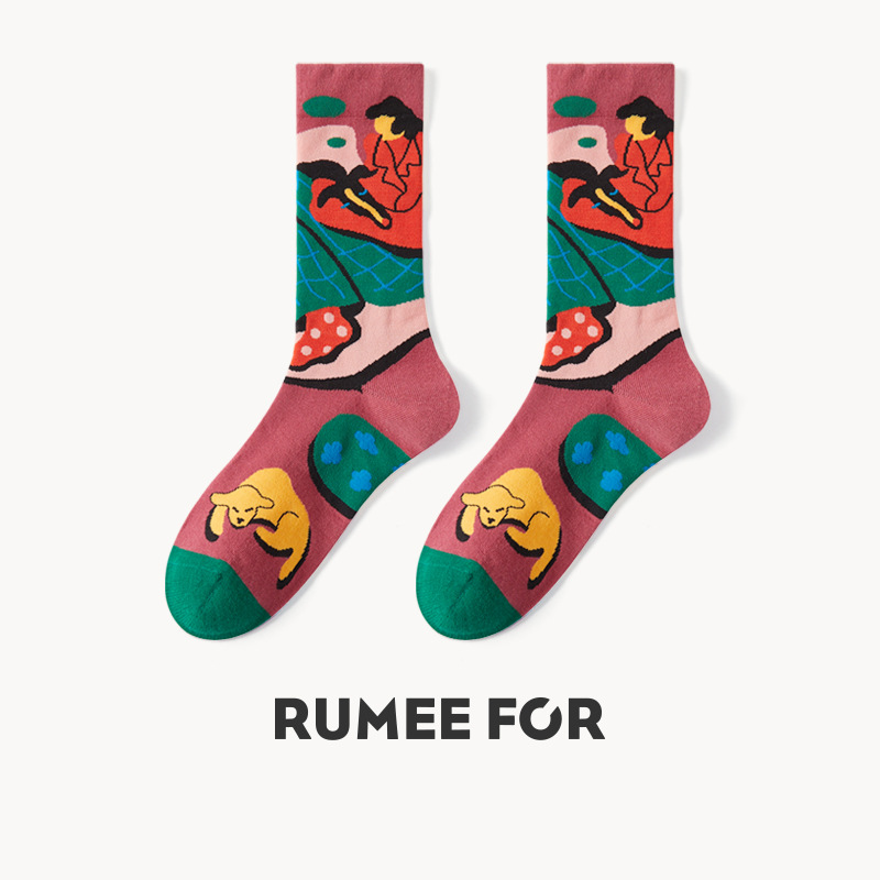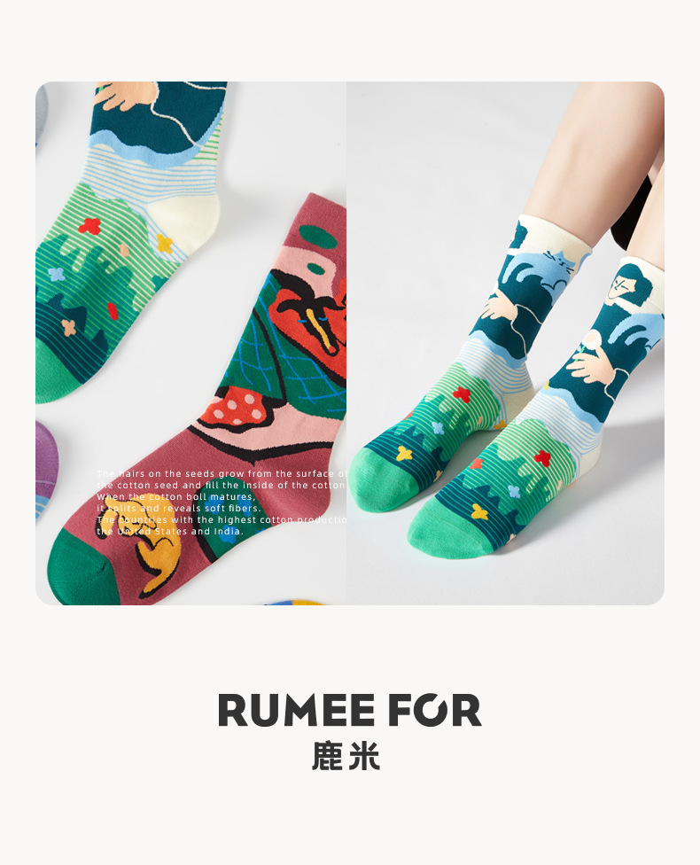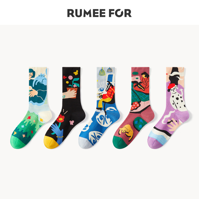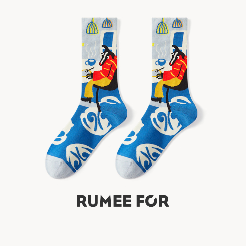 사슴 쌀 유화 여성 미드 양말 Ins 트렌디 한 코튼 커플의 Zhuji 양말 땀 흡수 도파민 트렌디 양말
