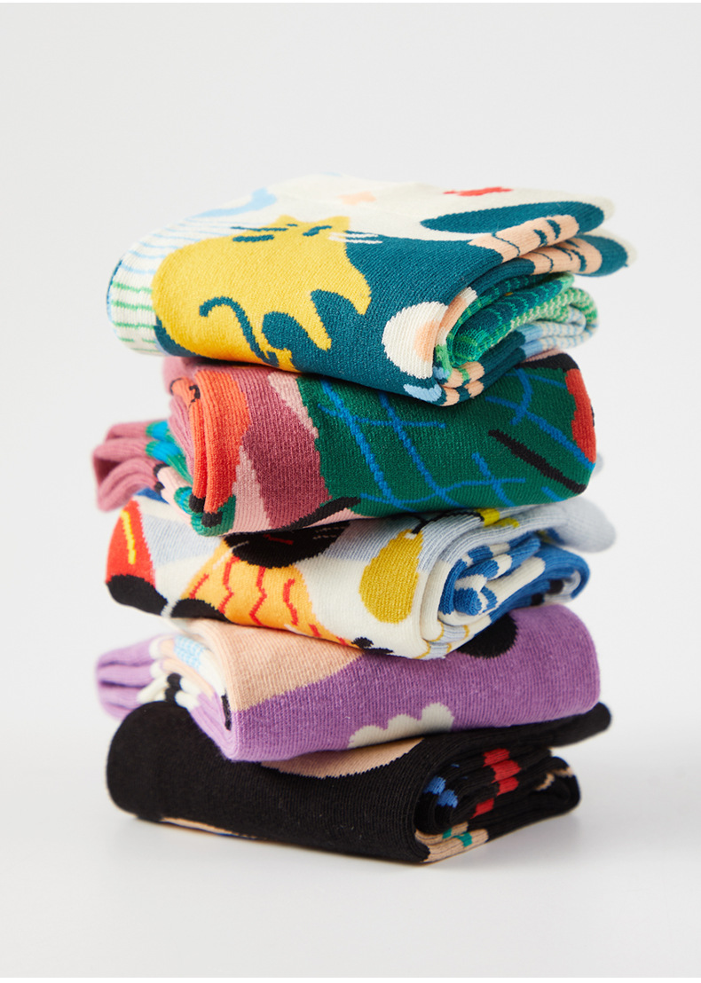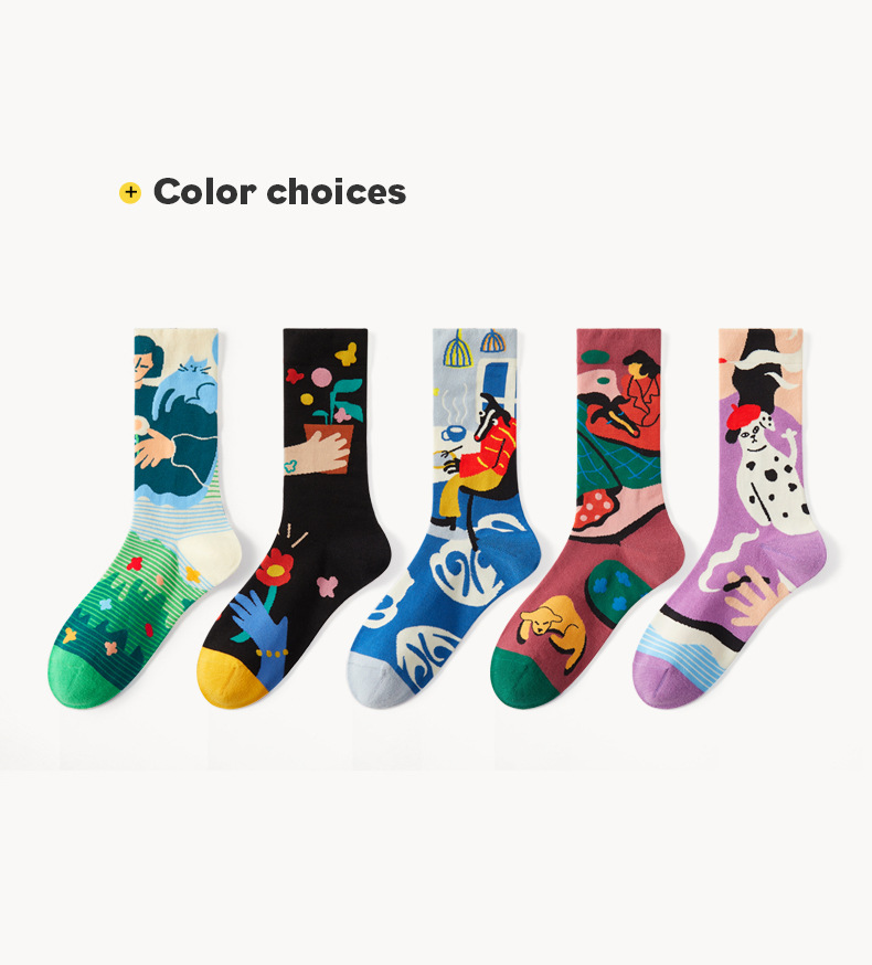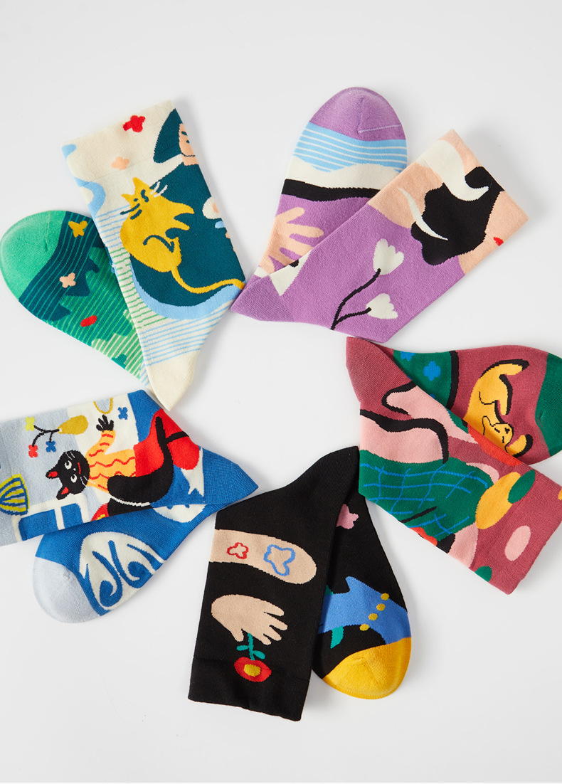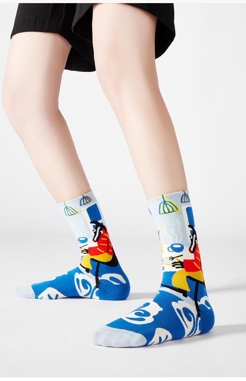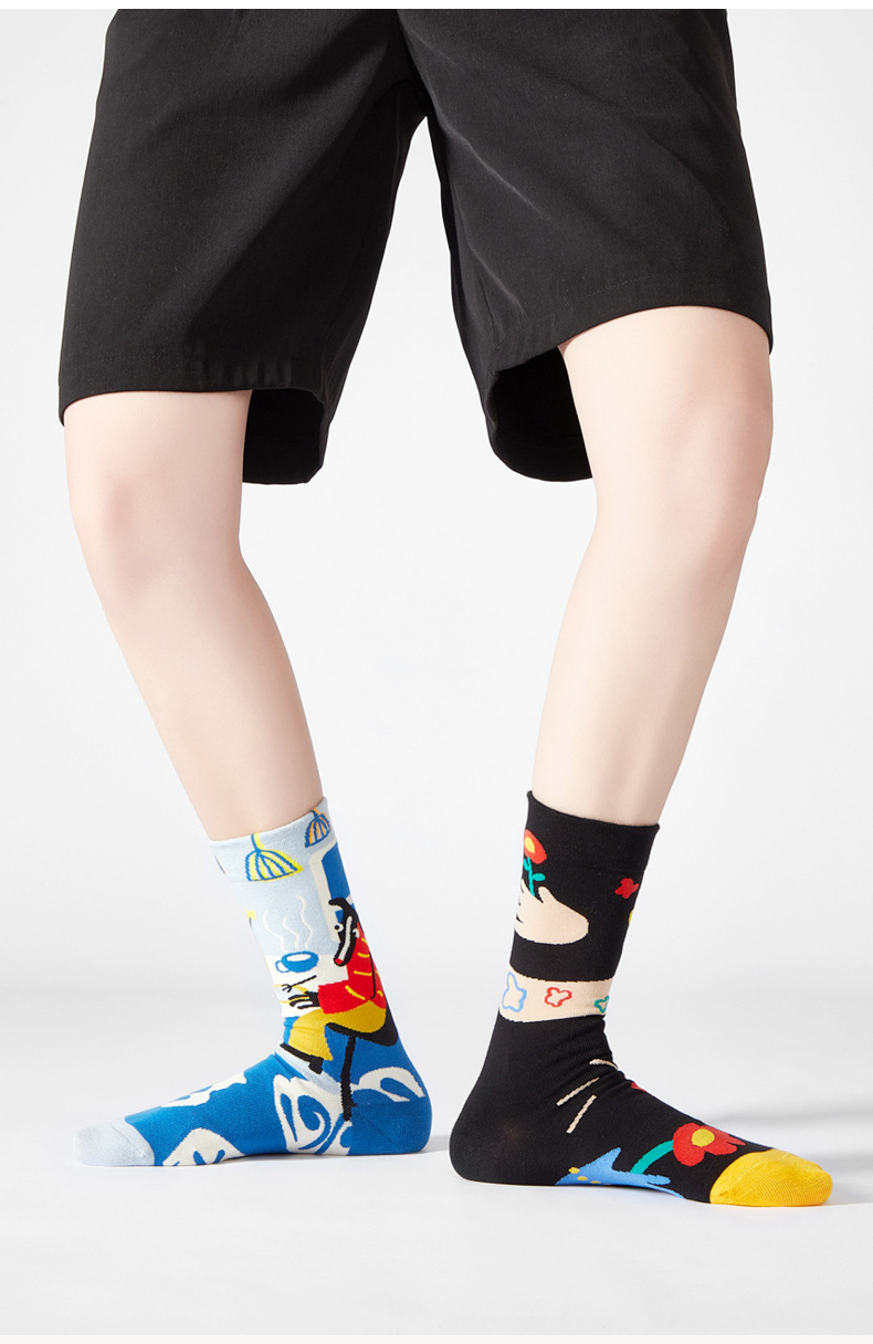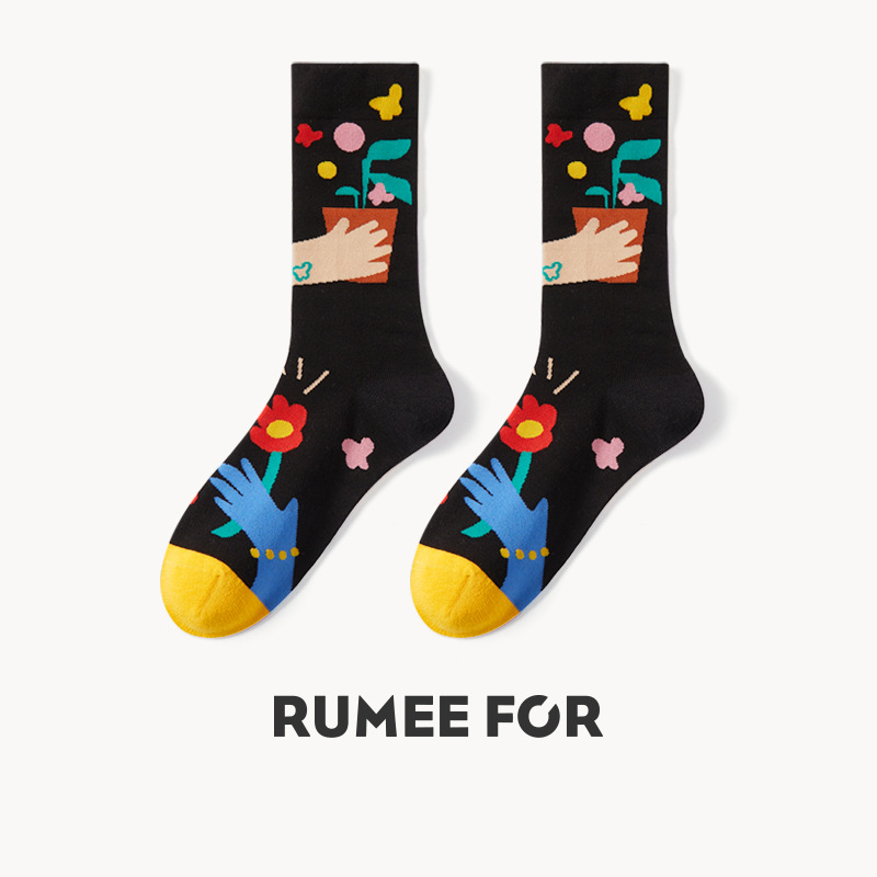 사슴 쌀 유화 여성 미드 양말 Ins 트렌디 한 코튼 커플의 Zhuji 양말 땀 흡수 도파민 트렌디 양말