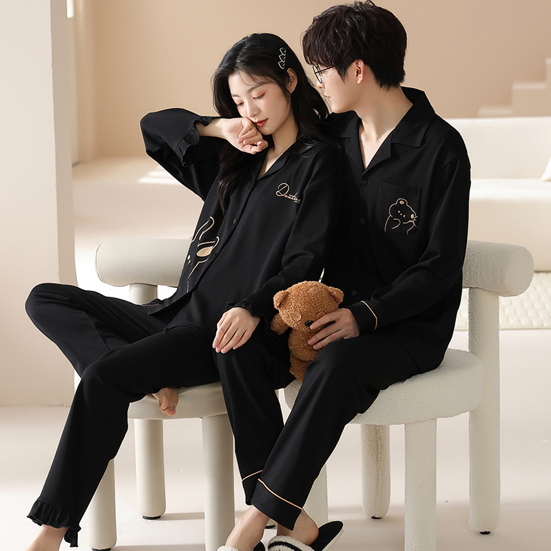 새로운 봄과 가을 커플 긴팔 귀여운 만화 인쇄 연령 감소 옷깃 캐주얼 홈 아웃웨어 면 잠옷
