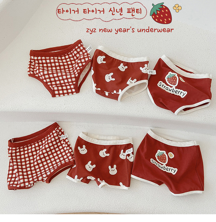 빨간 축제 어린이 속옷 면 만화 아기 브리프 어린이 복서 반바지 여자 속옷 도매