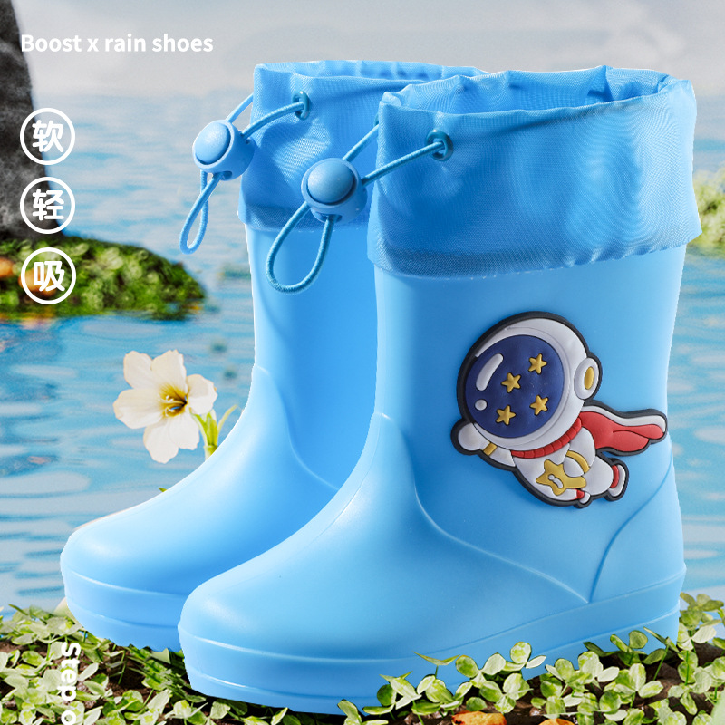 소년과 소녀를위한 새로운 어린이 비 신발 유치원 목 통기성 부드러운 바닥 물 신발 방수 고무 신발 미끄럼 방지 장화스토어 가기