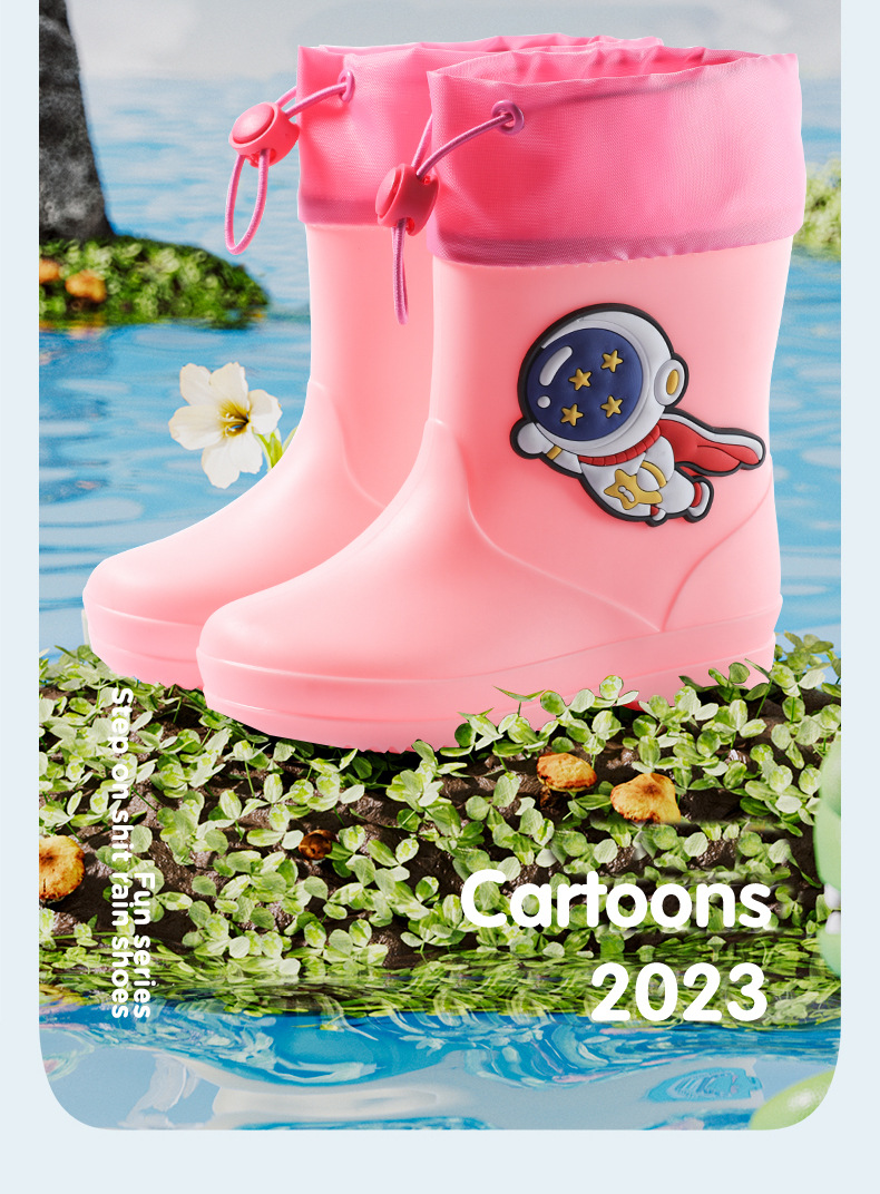 소년과 소녀를위한 새로운 어린이 비 신발 유치원 목 통기성 부드러운 바닥 물 신발 방수 고무 신발 미끄럼 방지 장화