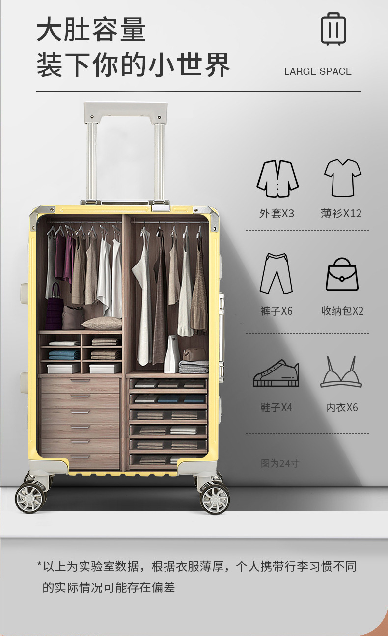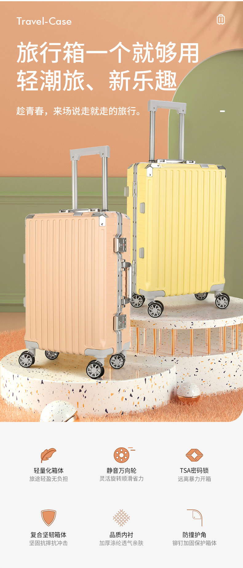 학생 가방 대용량 24 인치 유니버설 휠 가방 새로운 콤비네이션 잠금 다기능 알루미늄 프레임 트롤리 케이스