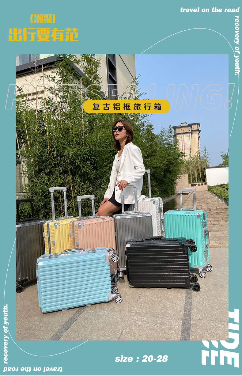 학생 가방 대용량 24 인치 유니버설 휠 가방 새로운 콤비네이션 잠금 다기능 알루미늄 프레임 트롤리 케이스스토어 가기