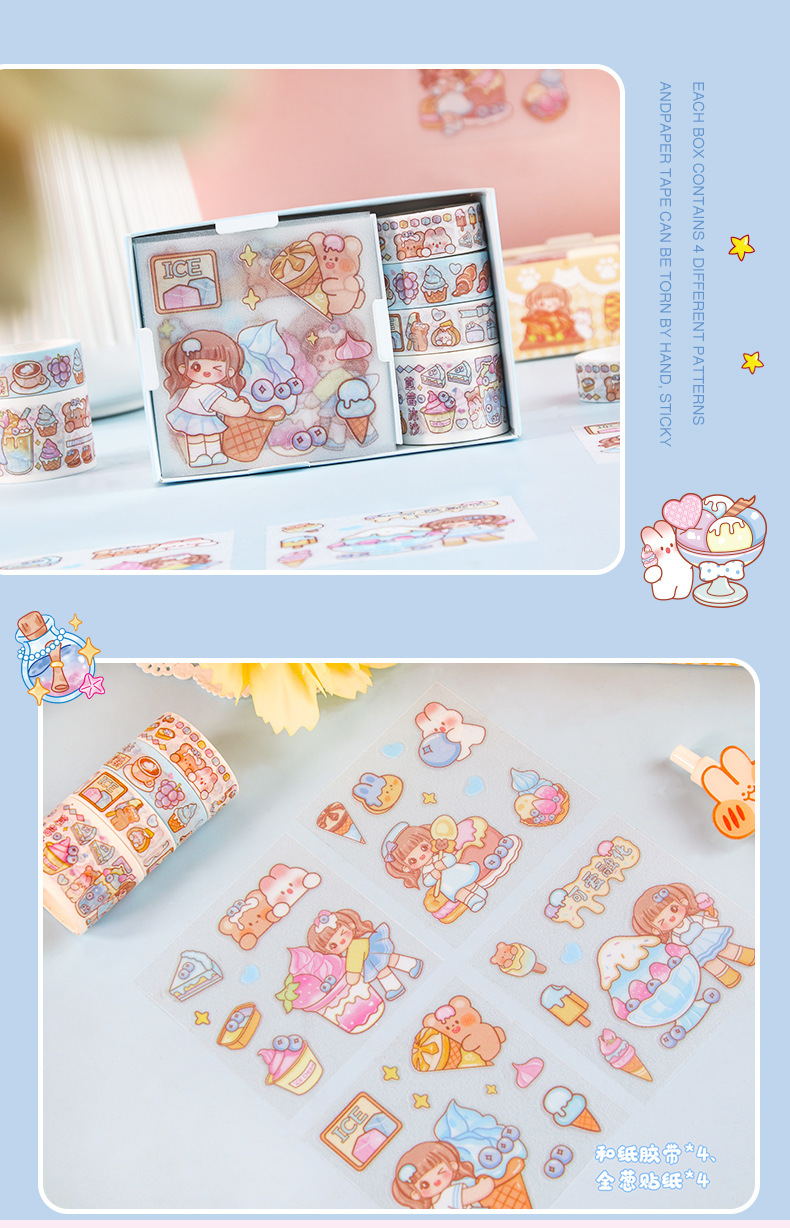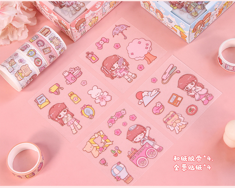 스티커 테이프에 12 상자를 세트 손 계정 선물 상자 귀여운 만화 작은 신선한 DIY 장식 재료