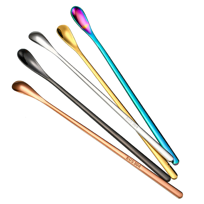 304 스테인레스 스틸 일본식 긴 손잡이 믹싱 스푼 커피 스푼 디저트 아이스 스푼 재고 바 바텐더 스푼 교반기