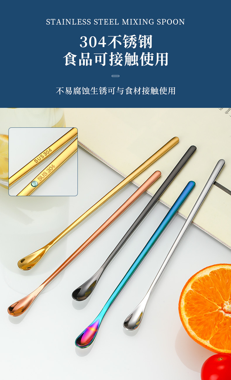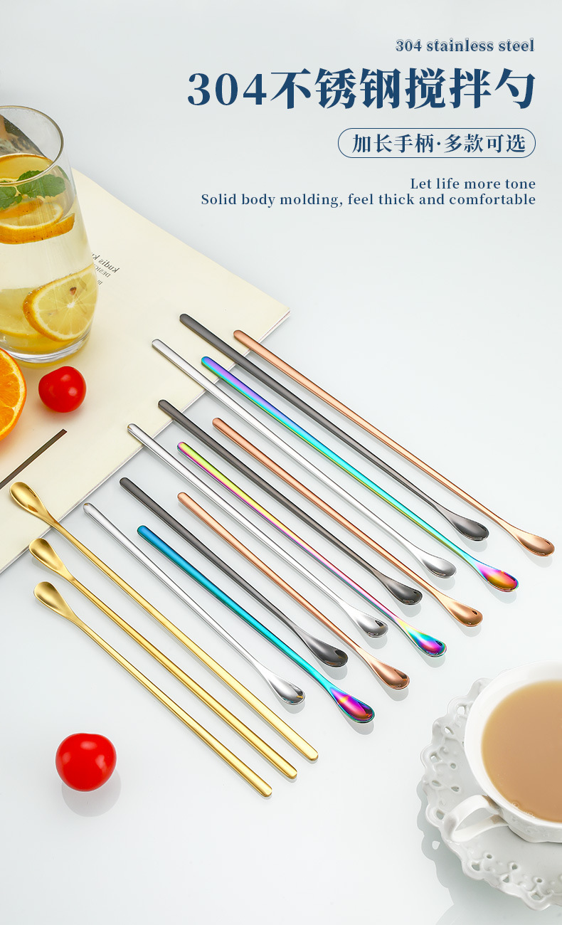 304 스테인레스 스틸 일본식 긴 손잡이 믹싱 스푼 커피 스푼 디저트 아이스 스푼 재고 바 바텐더 스푼 교반기스토어 가기