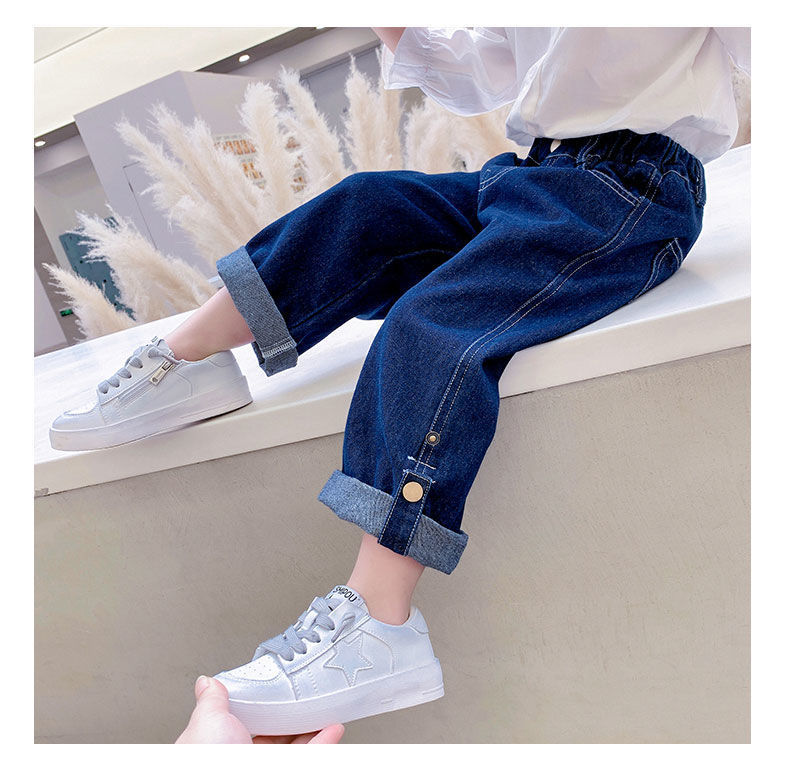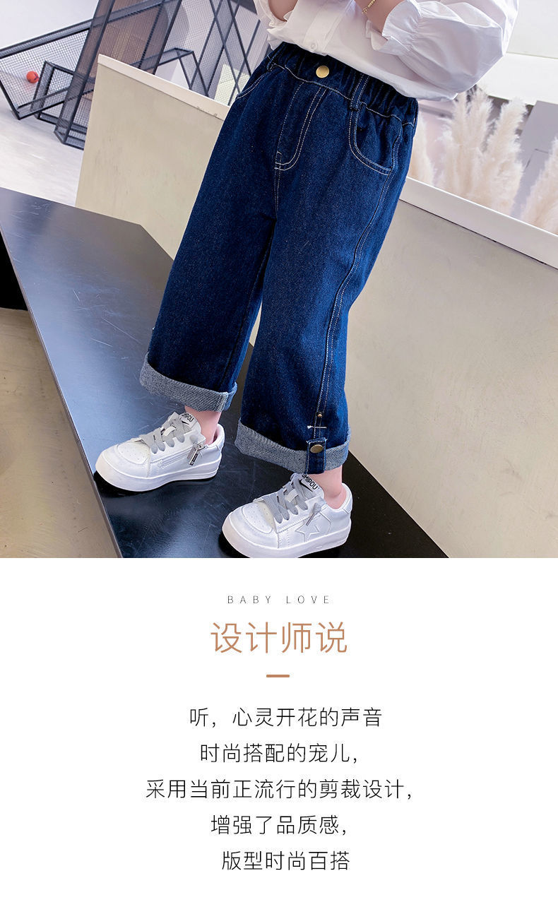 여아 봄 2023 새로운 아동복 한국 청바지 아동 트렌디 바지 아기 스트레이트 팬츠