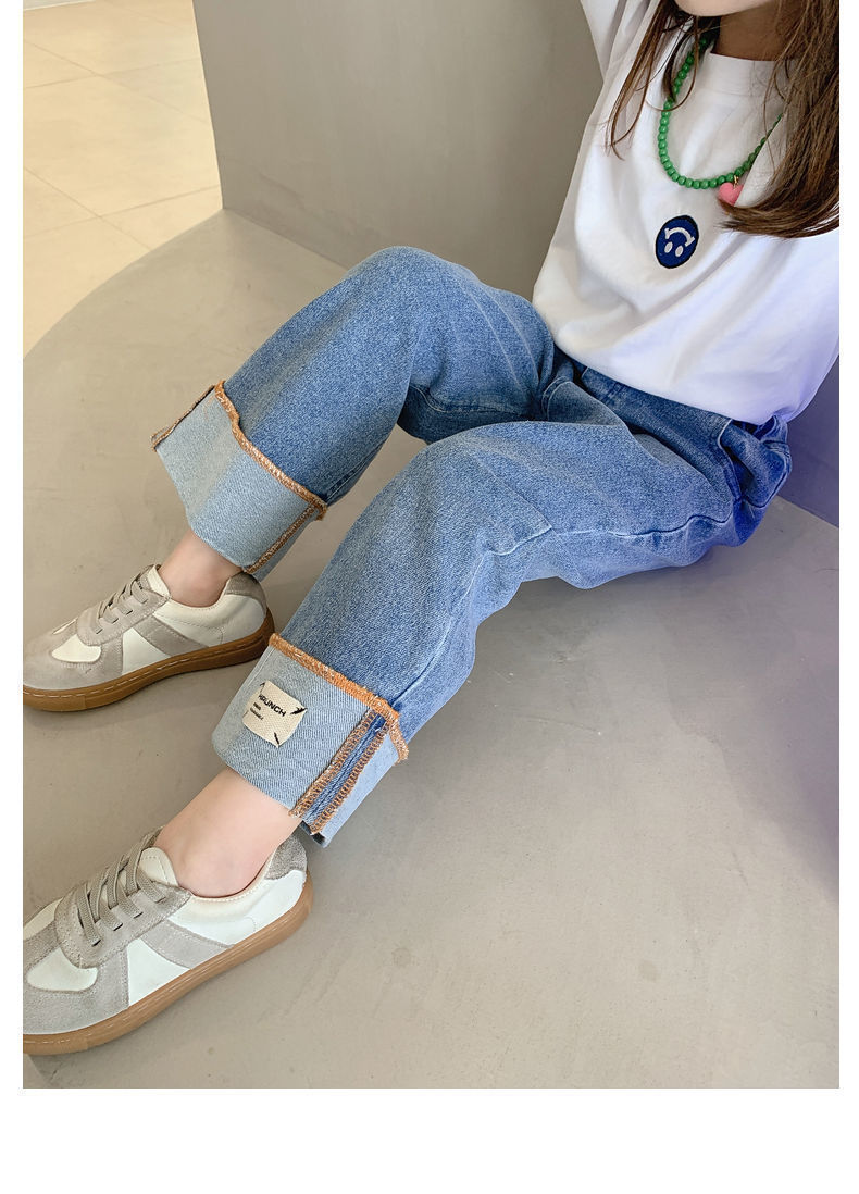 여아 봄 2023 새로운 아동복 한국 청바지 아동 트렌디 바지 아기 스트레이트 팬츠스토어 가기