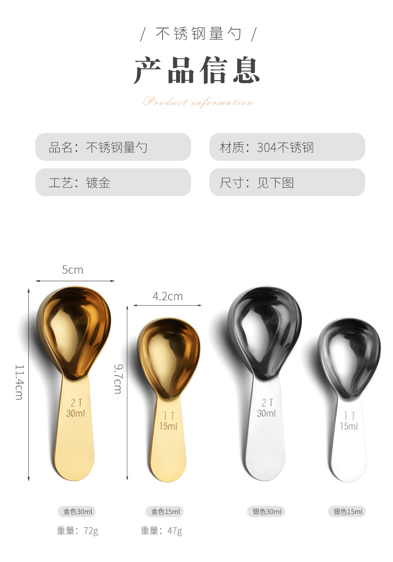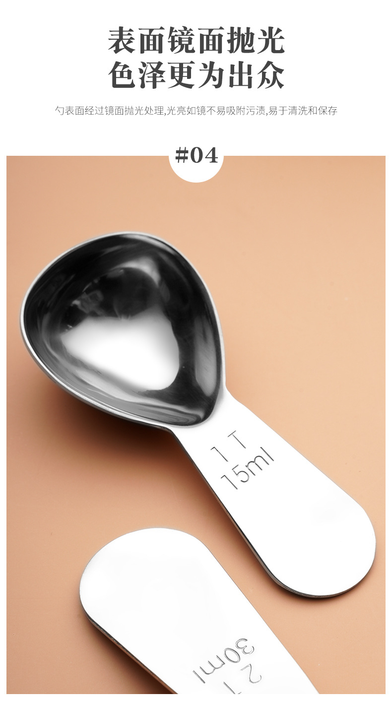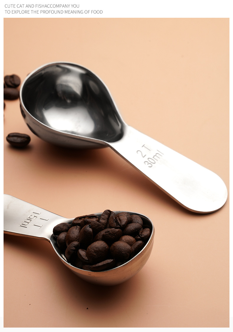 304 스테인레스 스틸 두꺼운 심화 측정 스푼 스케일 배꼽 스푼 커피 콩 분말 측정 숟가락 가정용 베이킹 도구