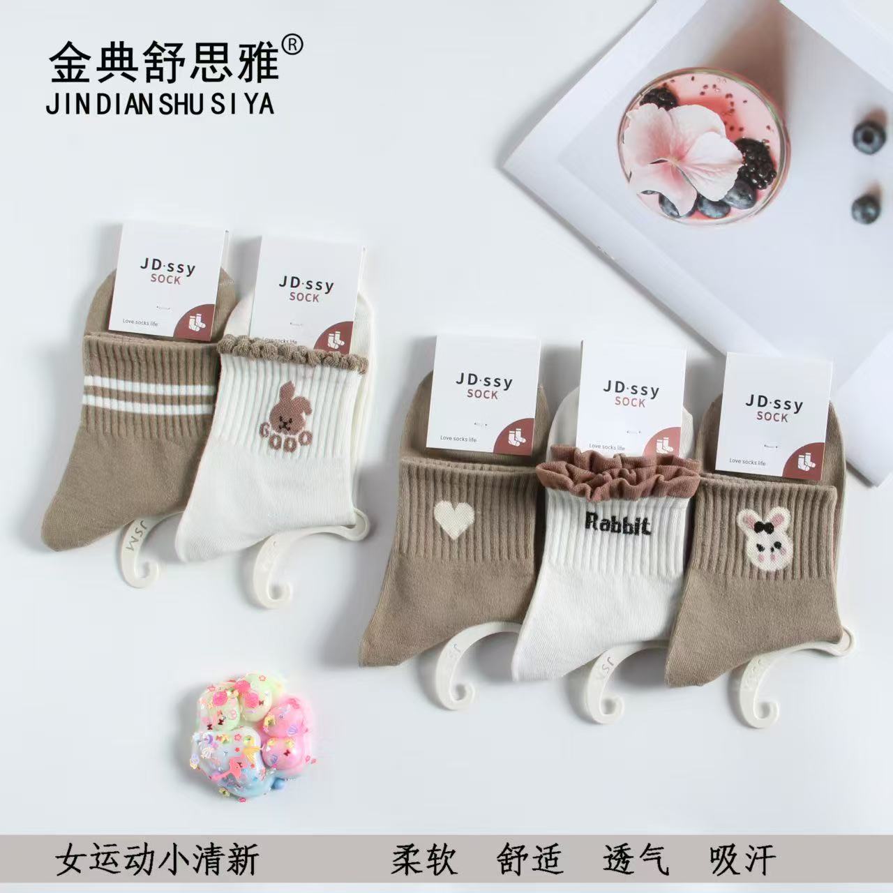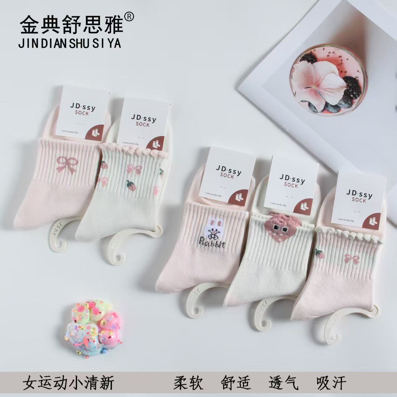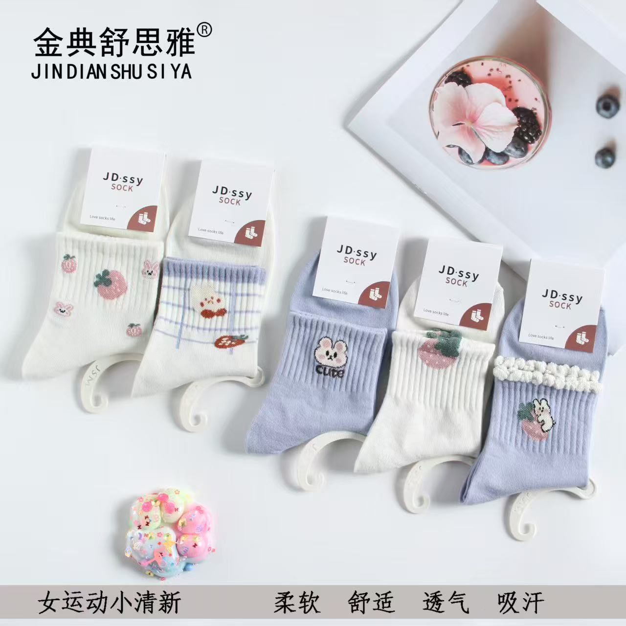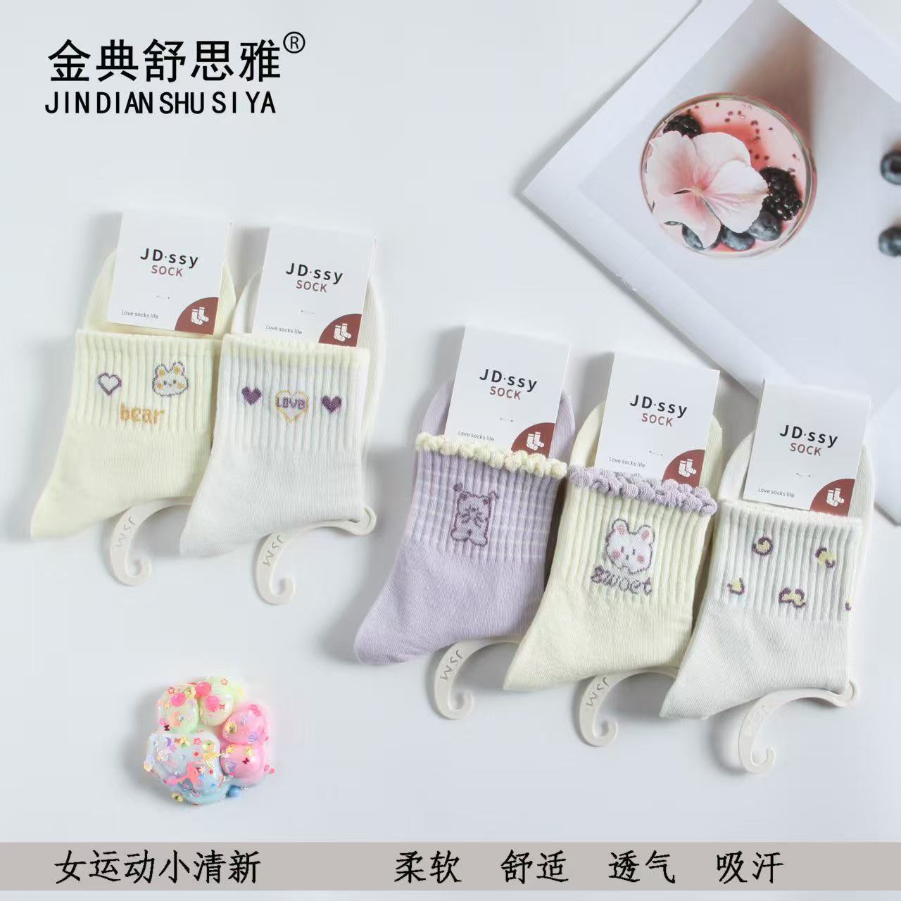 봄과 가을 새로운 여성 버블 섬유 귀여운 만화 신선한 시리즈 학생 대학 스타일 스포츠 면 양말 짧은 튜브