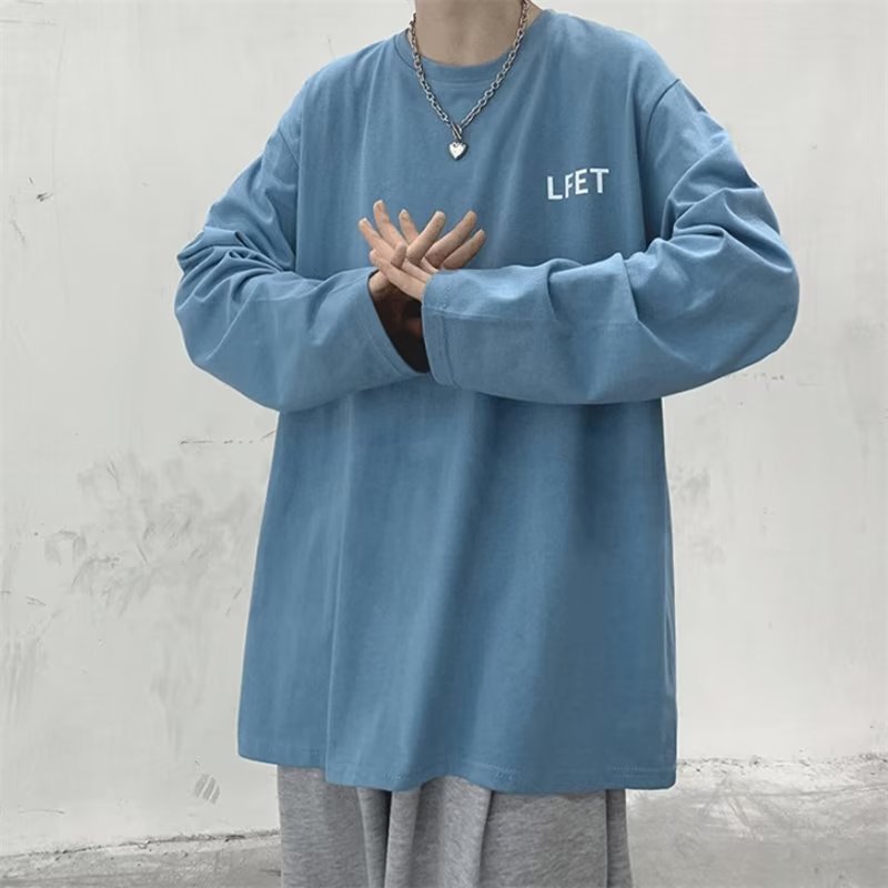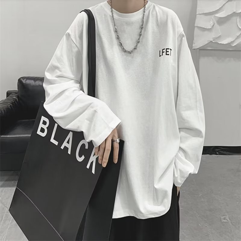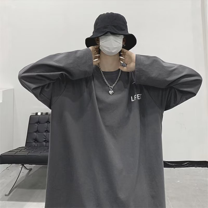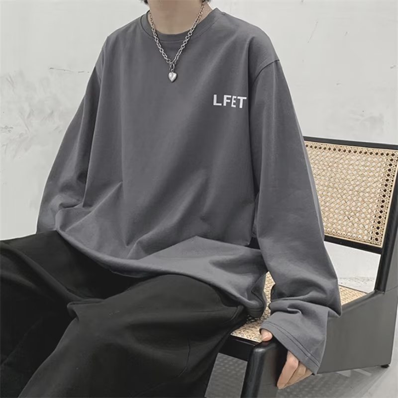 간단한 긴 소매 티셔츠 남자의 가을 패션 느슨한 편지 2023 베이스 셔츠 홍콩 스타일 트렌디 브랜드 커플 탑스토어 가기