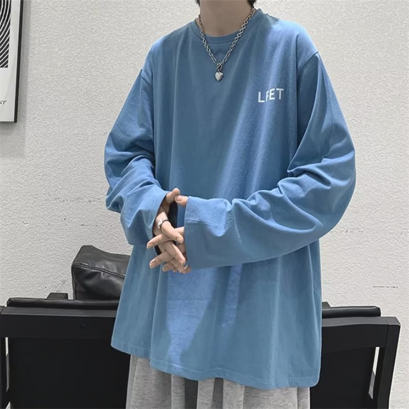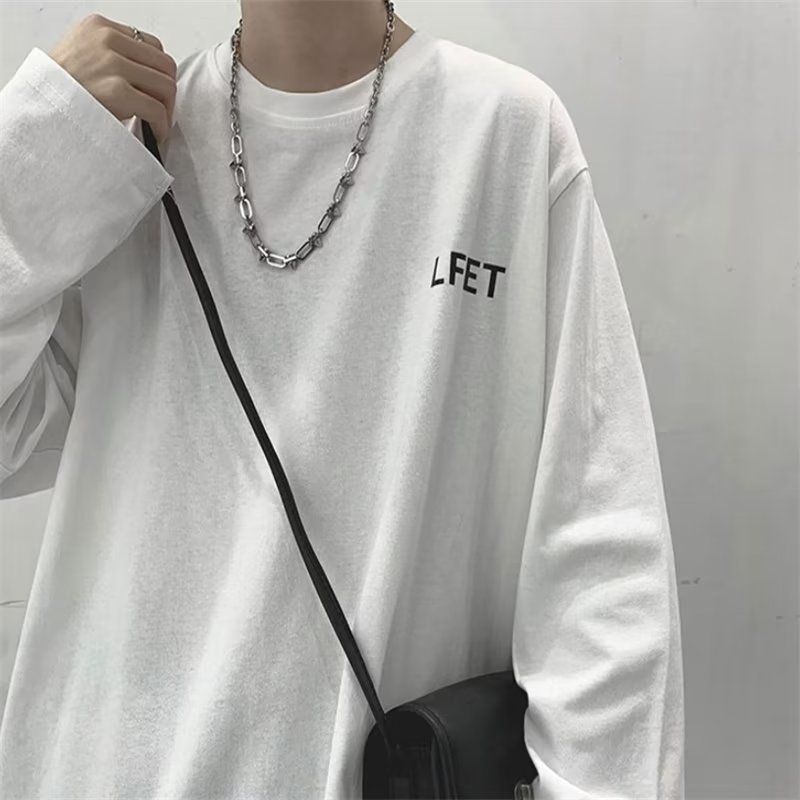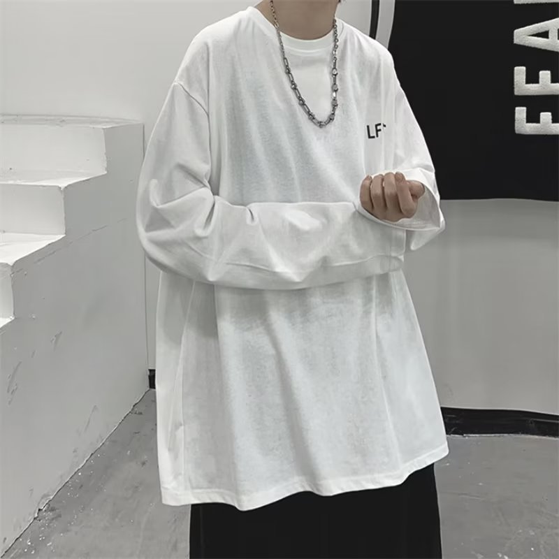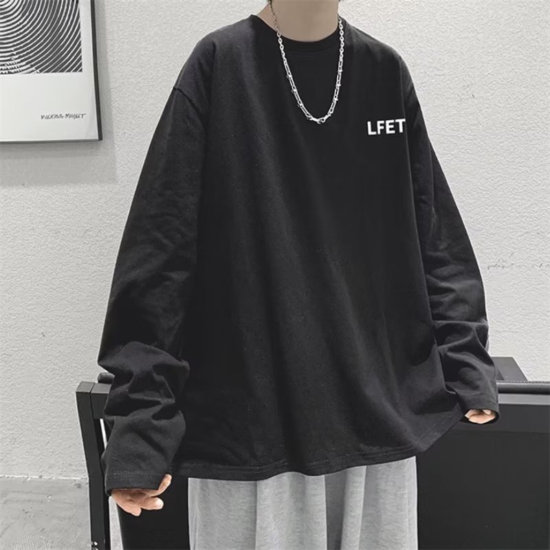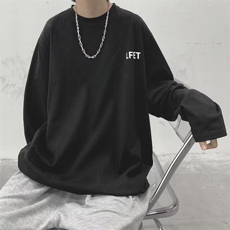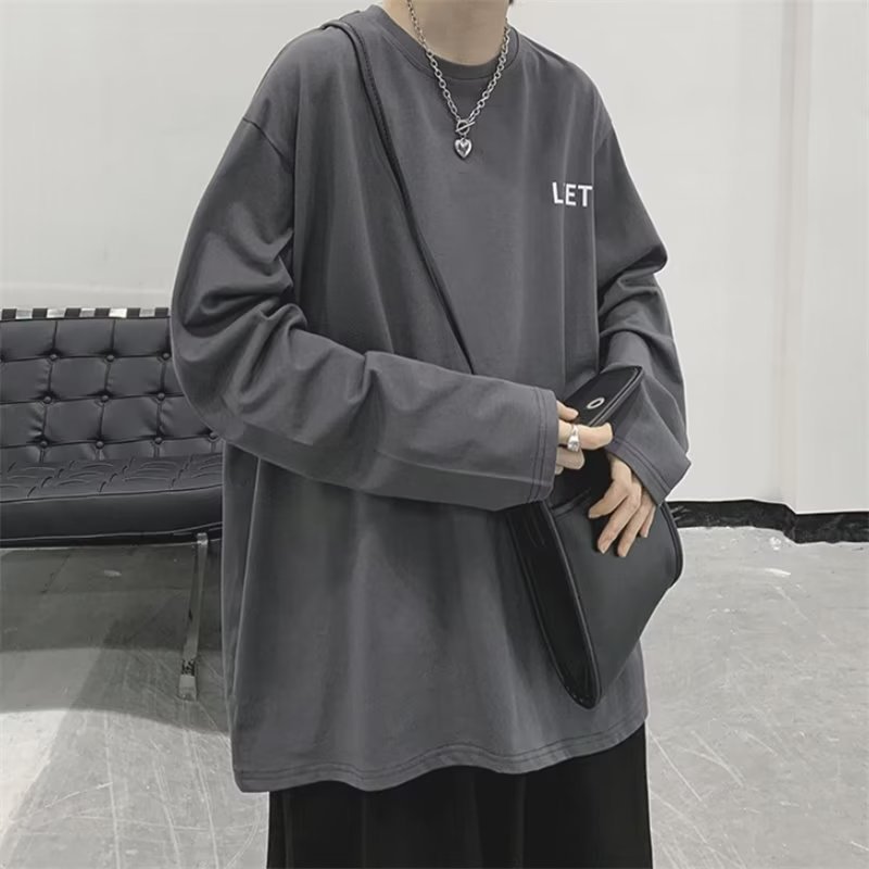간단한 긴 소매 티셔츠 남자의 가을 패션 느슨한 편지 2023 베이스 셔츠 홍콩 스타일 트렌디 브랜드 커플 탑