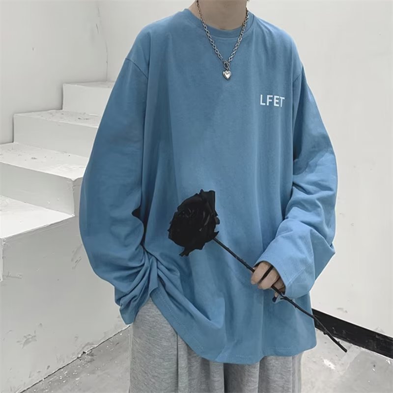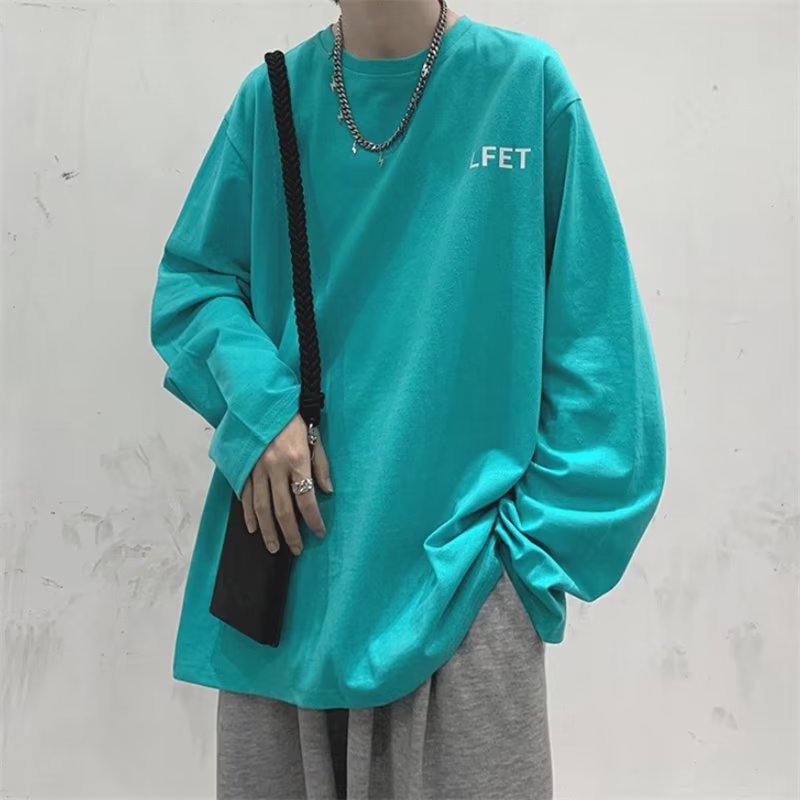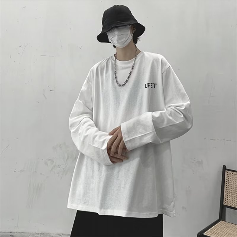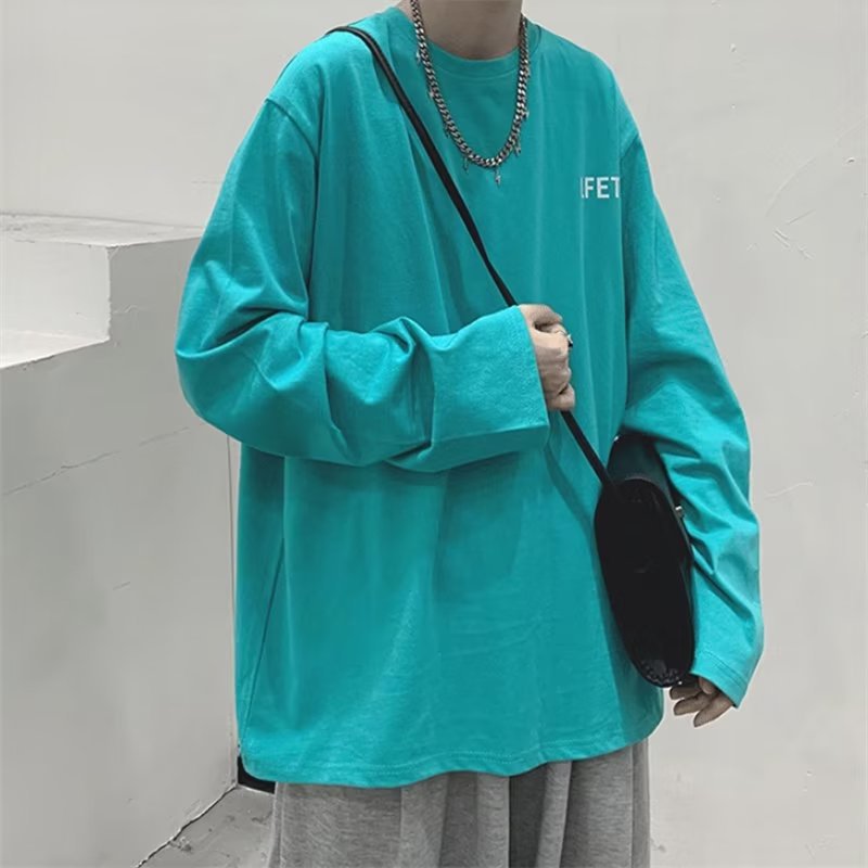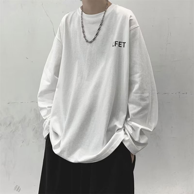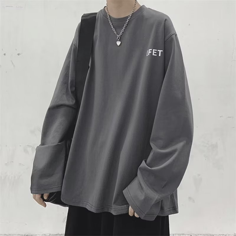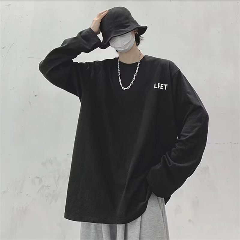 간단한 긴 소매 티셔츠 남자의 가을 패션 느슨한 편지 2023 베이스 셔츠 홍콩 스타일 트렌디 브랜드 커플 탑