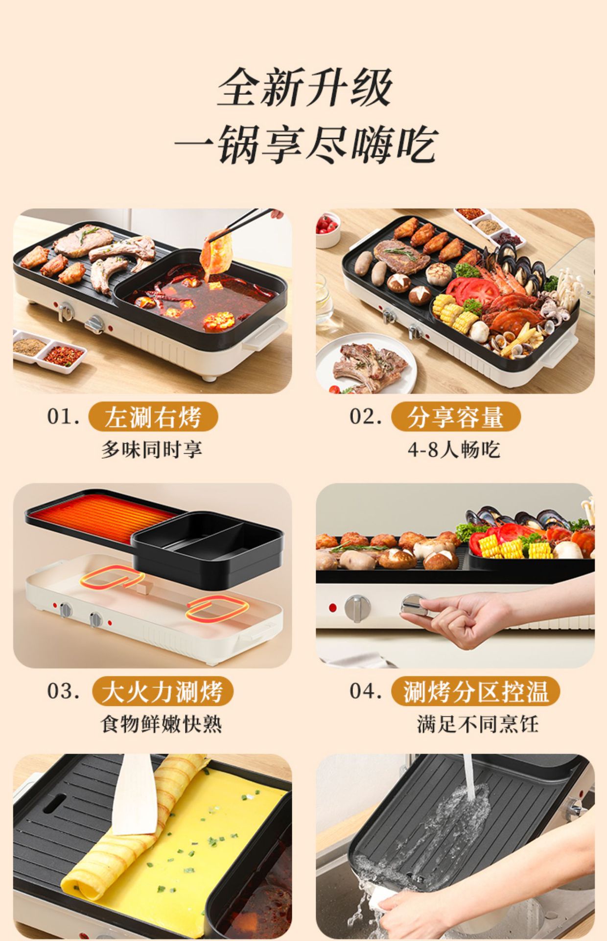 다기능 전기 전골솥, 전기 바베큐 그릴, 올인원 가정용 한국식 저연성 그릴, 양념장 및 바베큐 겸용 생선구이 및 바베큐 기계