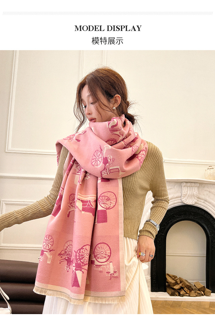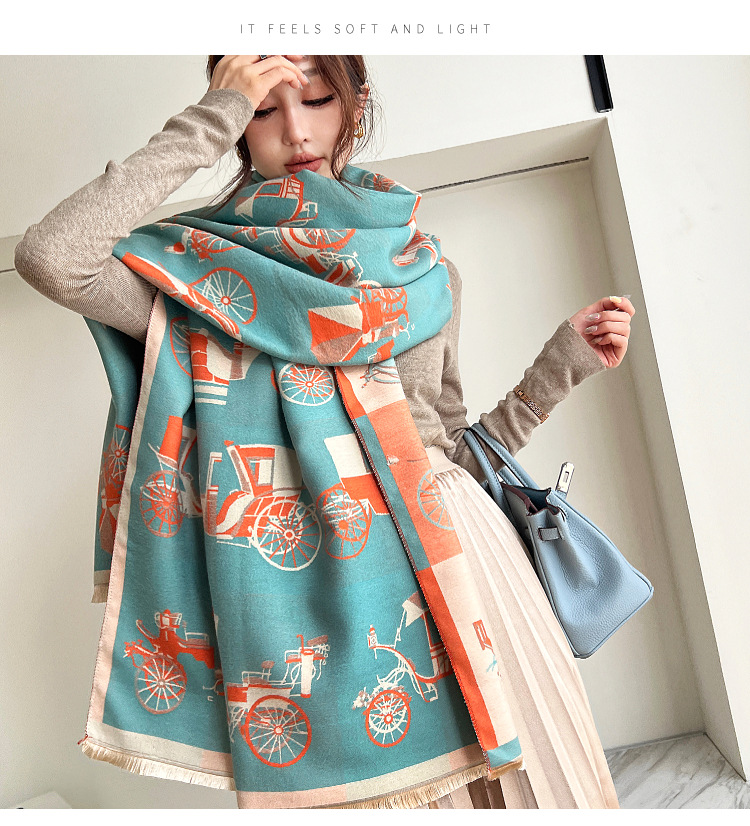 한국 스타일 가을과 겨울 우아한 가벼운 럭셔리 풍차 말 도망 캐시미어 스카프 여성용 기모 보온 방풍 모든 매치 스카프스토어 가기
