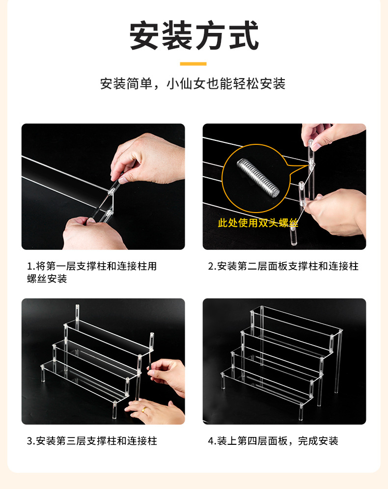 아크릴 스토리지 랙 쥬얼리 향수 스토리지 디스플레이 랙 투명 3 층 수직 튜브 테이블 핸드 헬드 사다리 디스플레이 랙
