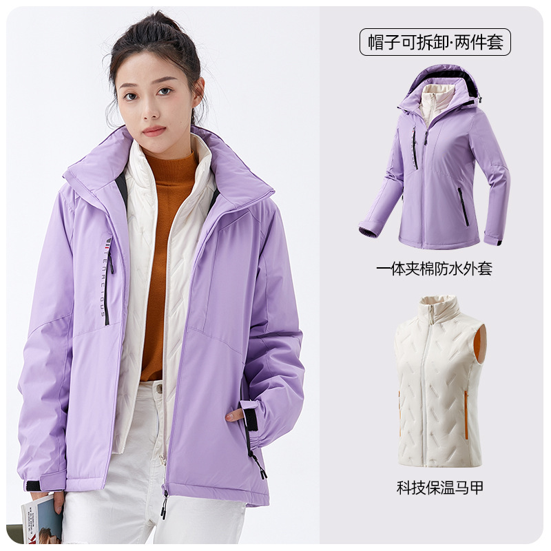 야외 등산 의류 여성용 탈착식 조끼 방풍 방수 가을과 겨울 커플 남성용 두꺼운 인쇄 재킷