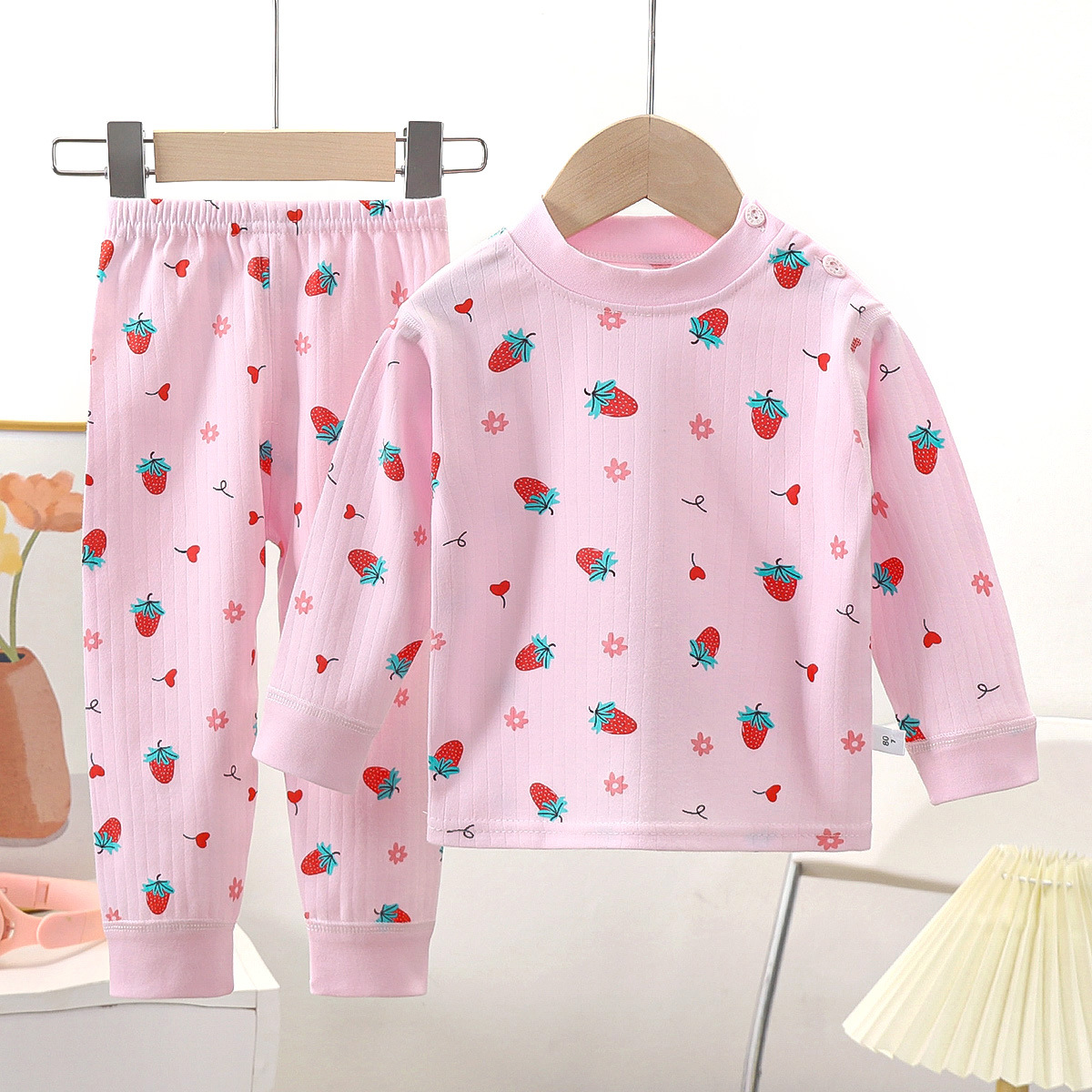 어린이 뼈없는 가을 옷과 바지 새로운 인쇄 따뜻한 가정 옷 소년과 소녀 기본 셔츠 아기 면 잠옷
