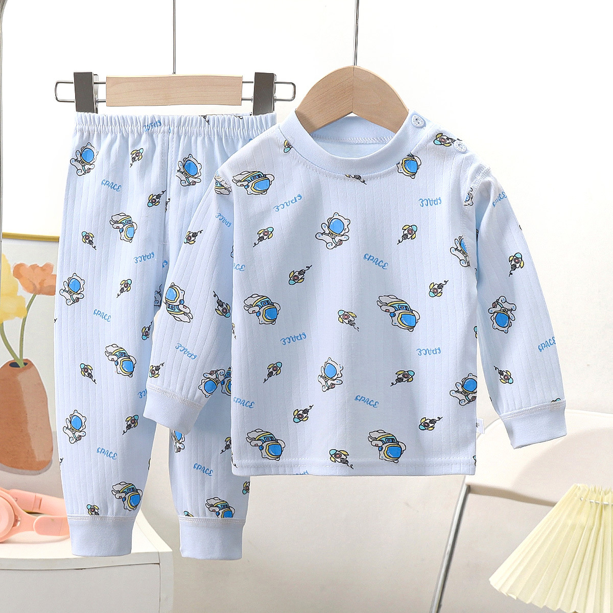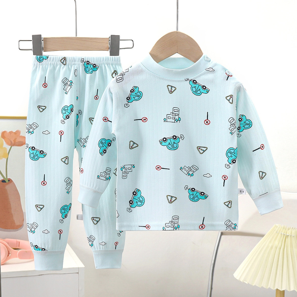 어린이 뼈없는 가을 옷과 바지 새로운 인쇄 따뜻한 가정 옷 소년과 소녀 기본 셔츠 아기 면 잠옷스토어 가기