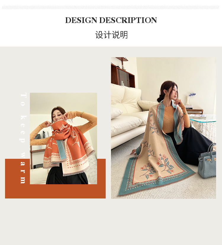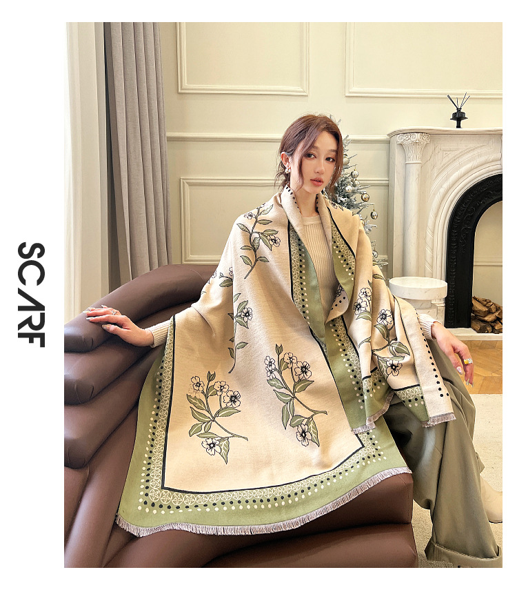 겨울 따뜻한 새로운 캐시미어 스카프 여성의 신선하고 하이 엔드 감각 봄 가득 스카프 기모 방풍 숄