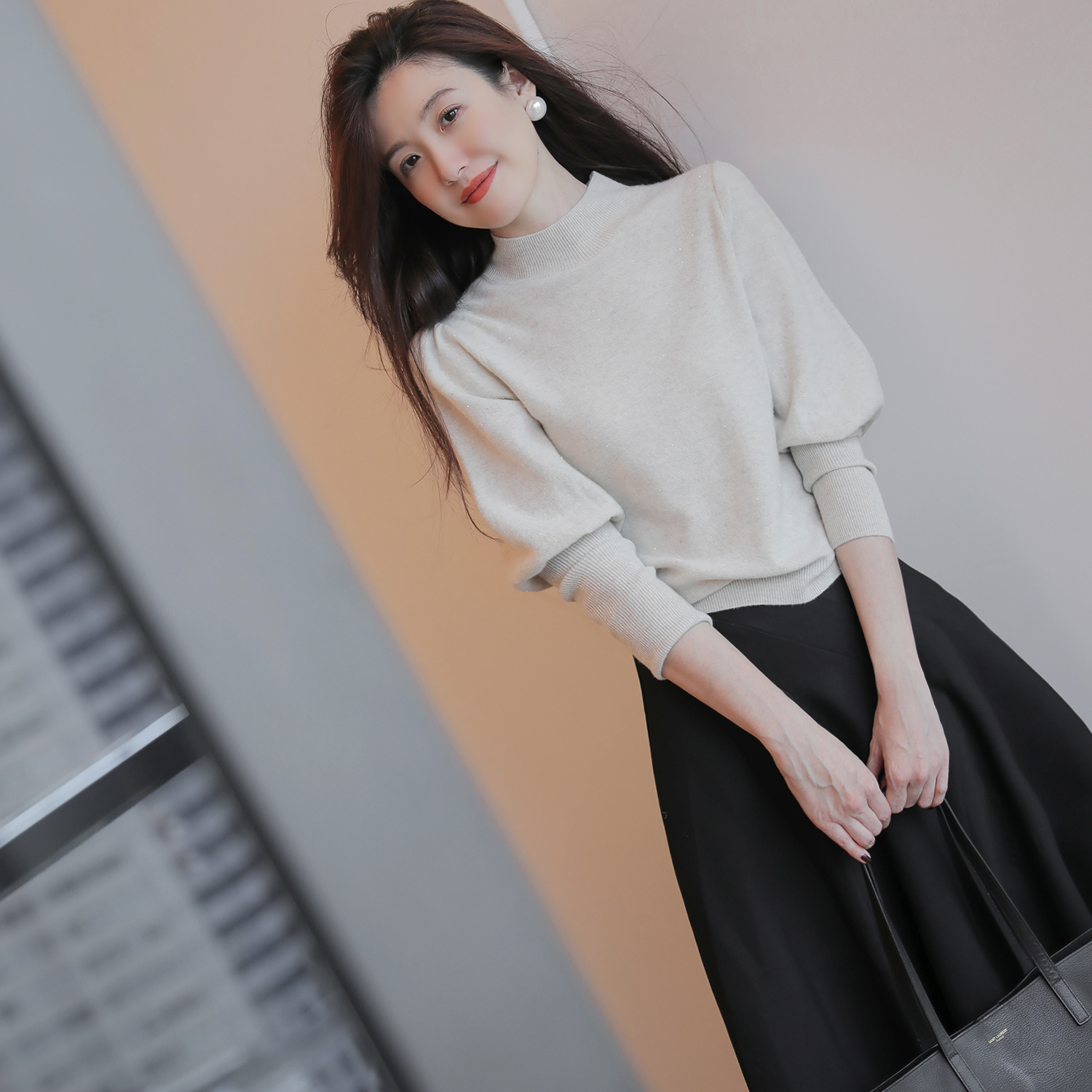 하프 하이 칼라 베이스 셔츠 여성용 봄과 가을 새로운 슬림핏 슬리밍 우아한 세련된 내부 스웨터 니트 탑