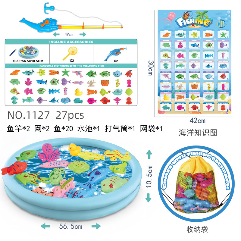 1127:鱼竿*2,网*2,鱼*20,水池*1,打气筒*1,网袋