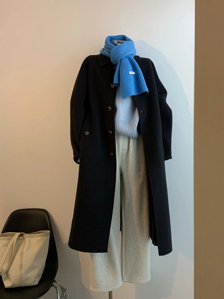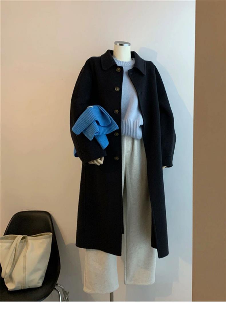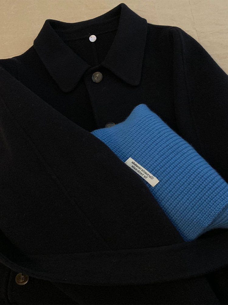 YT86599 햅번 스타일 양면 캐시미어 모직 코트 여성의 가을과 겨울 두꺼운 우아한 고급 감각 중간 길이 빈티지스토어 가기
