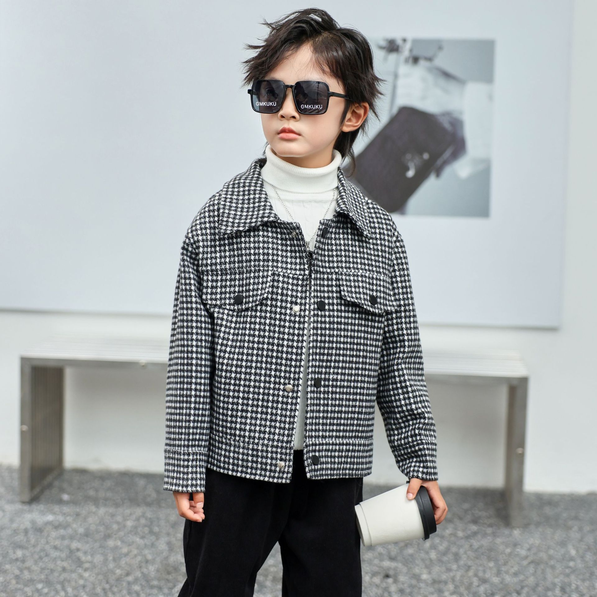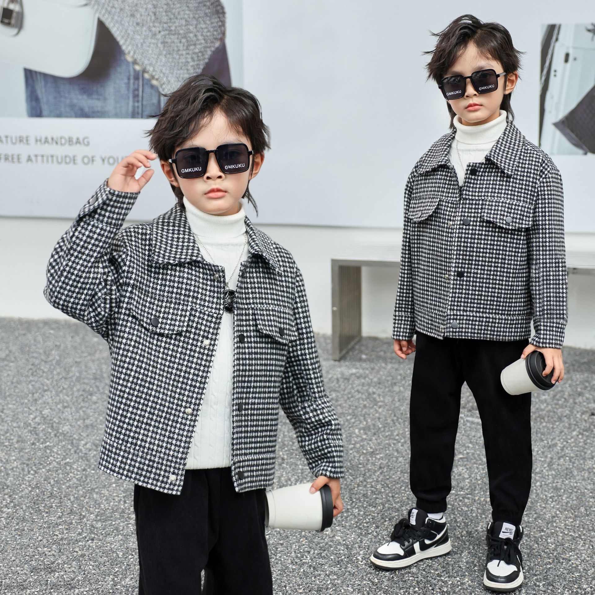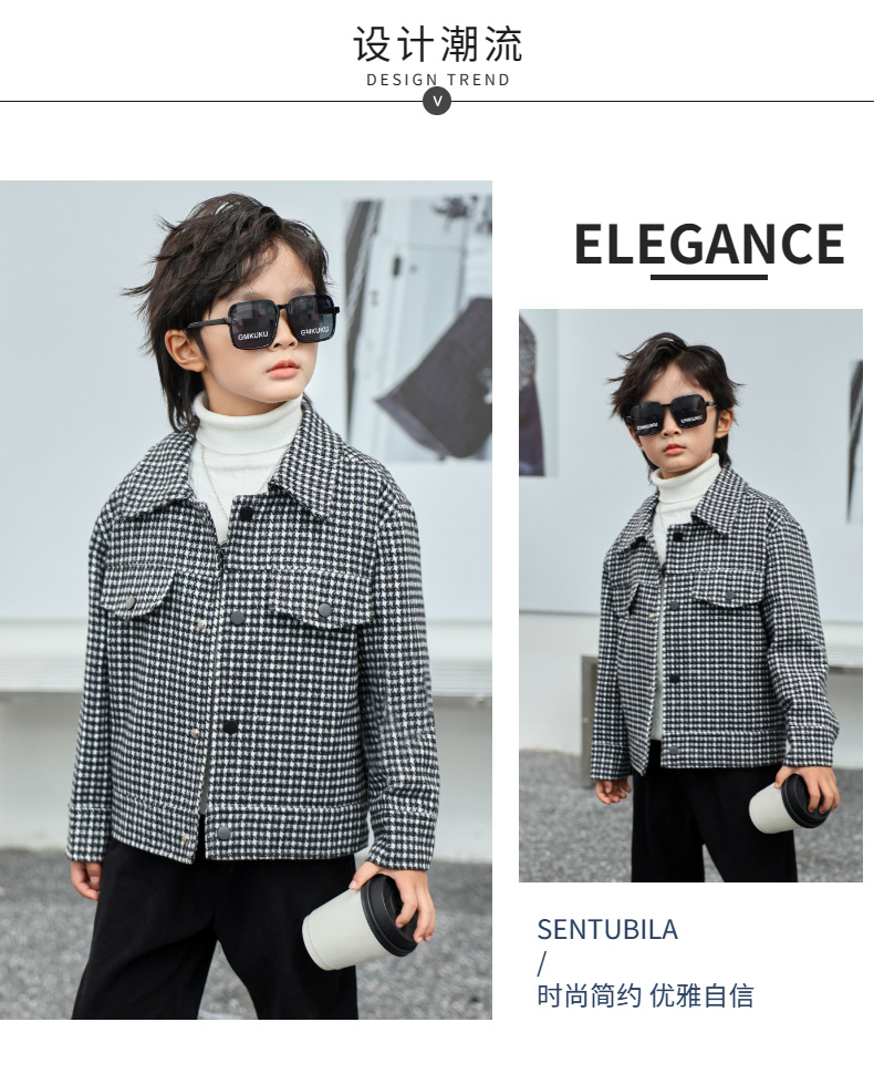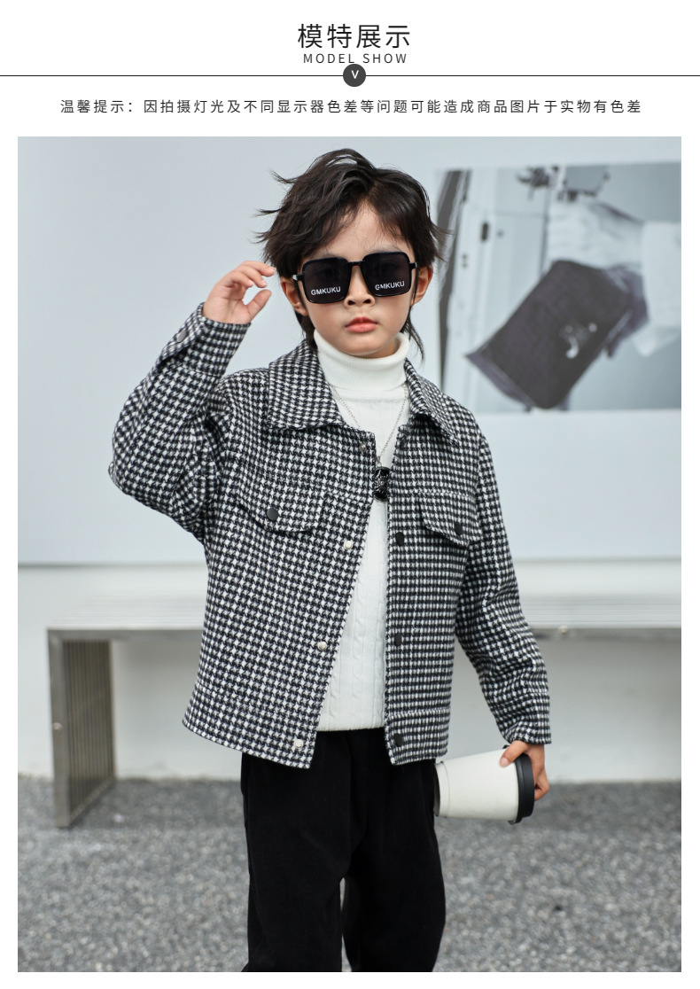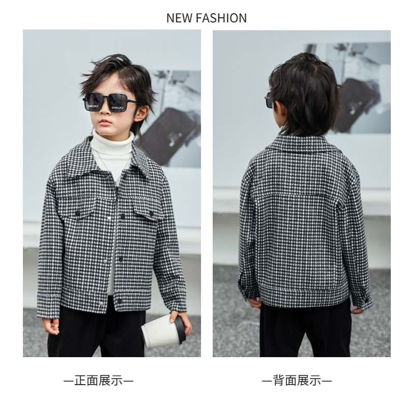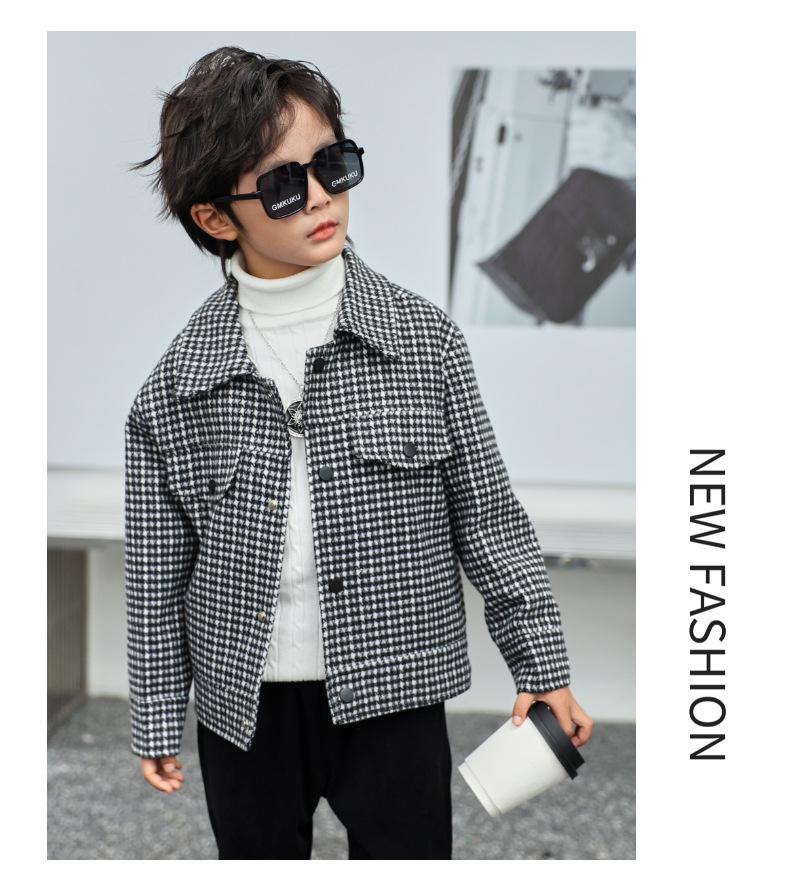 소년 모직 코트 Houndstooth 재킷 가을과 겨울 새로운 2023 한국 느슨한 패션 트렌드 잘 생긴 봄과 가을스토어 가기