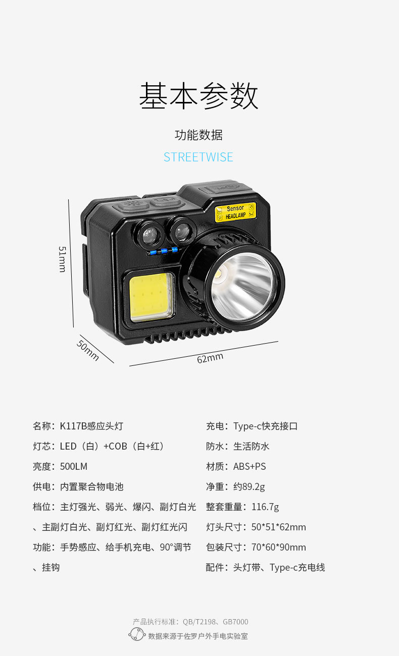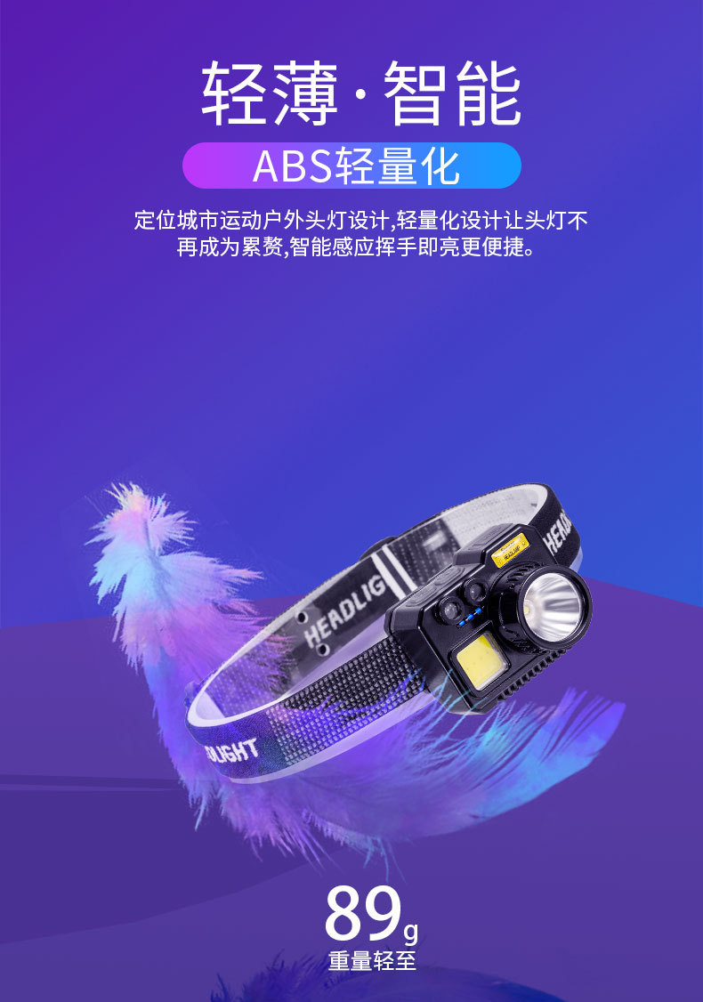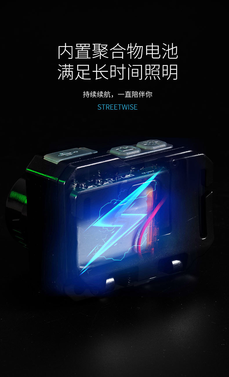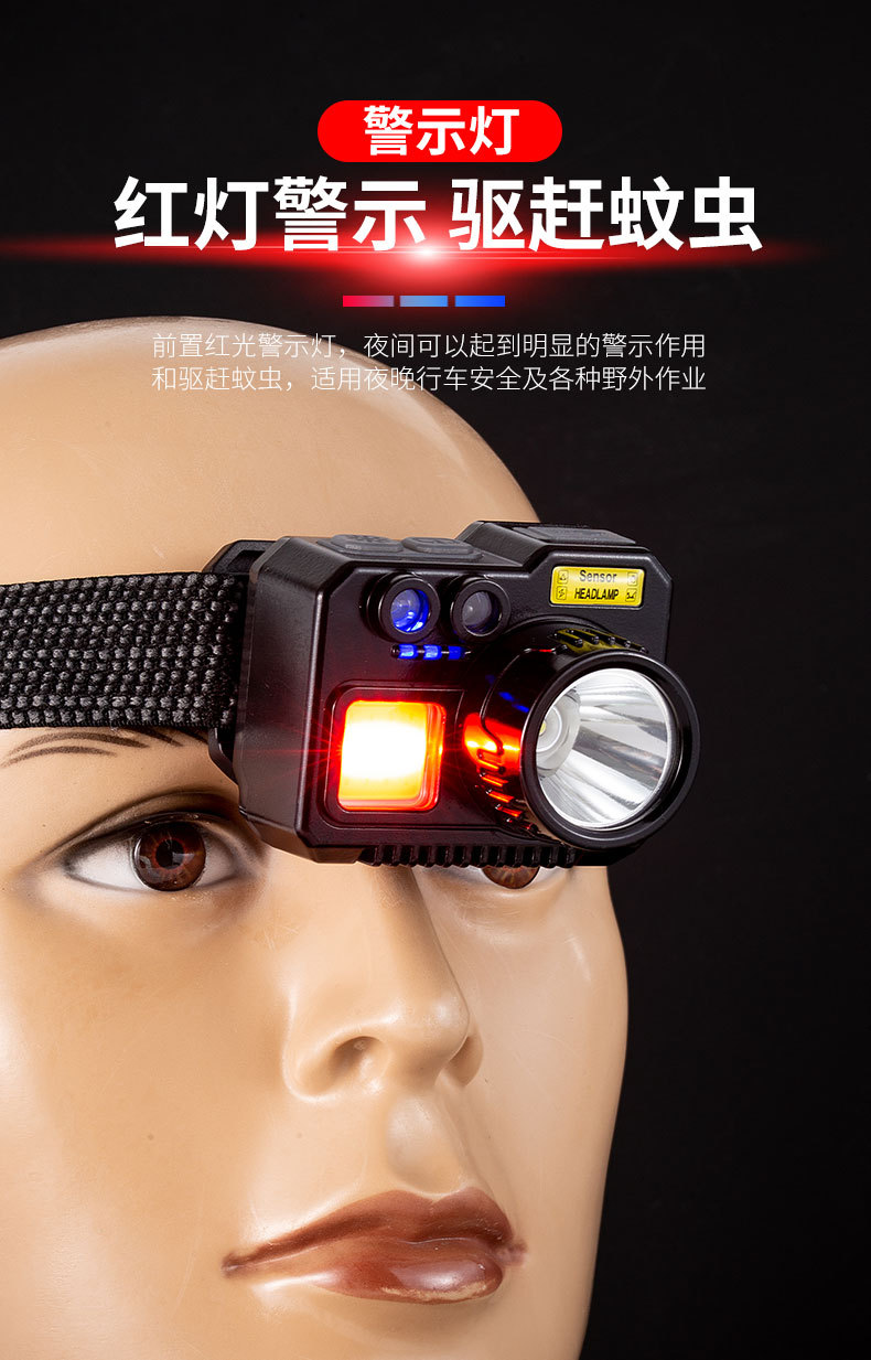 크로스 보더 아웃도어 슈퍼 브라이트 다기능 야간 낚시 지능형 유도 헤드 라이트 충전 긴 내구성 작업 등 유지 보수 등