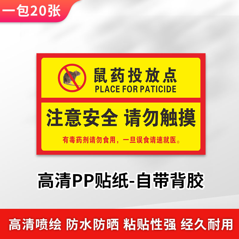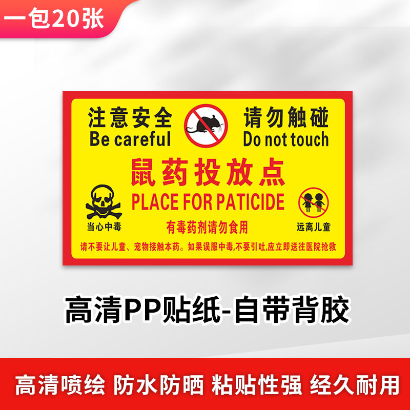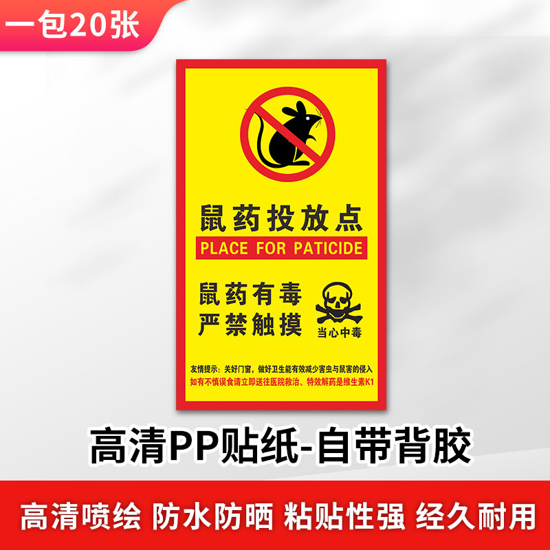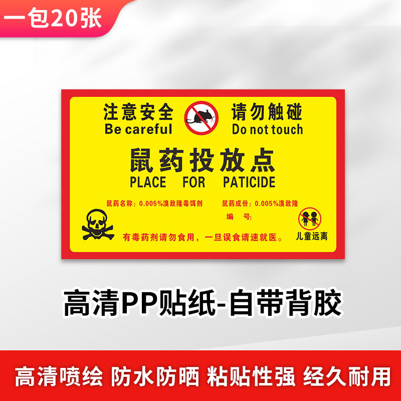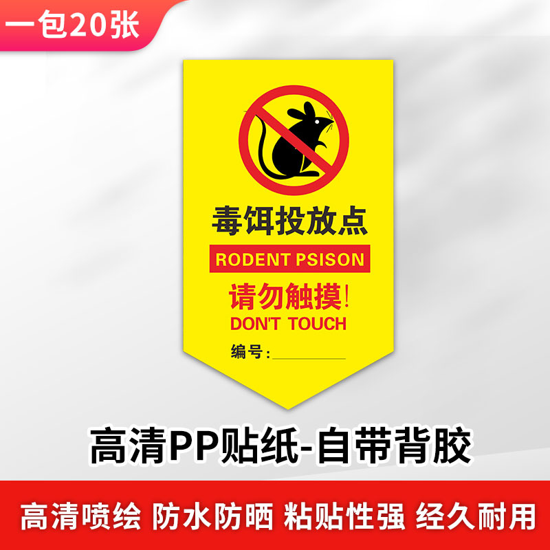 쥐 독 드롭 포인트 프롬프트 마우스 박스 독 미끼 역 마우스 하우스 스티커 라벨 PVC 스티커 안전 경고 스티커